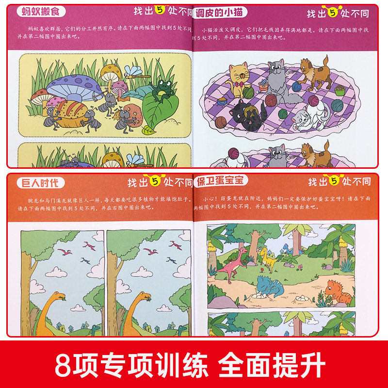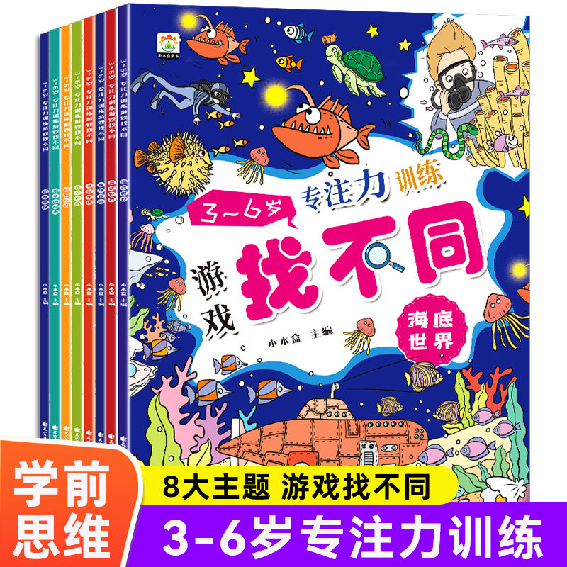 全8册】3-6岁专注力训练游戏找不同 趣味找不同专注力训练书 找茬高难度数学思维逻辑观察力儿童幼儿园益智游戏绘本5-10岁7-12岁