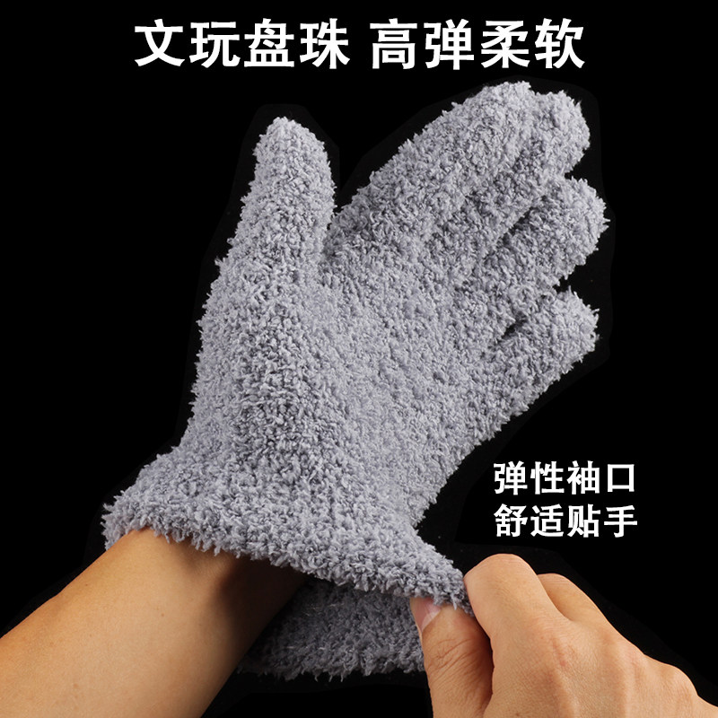 新款文玩万毛手套盘核桃神器加厚毛绒棉耐磨抛光打底包浆金刚清理