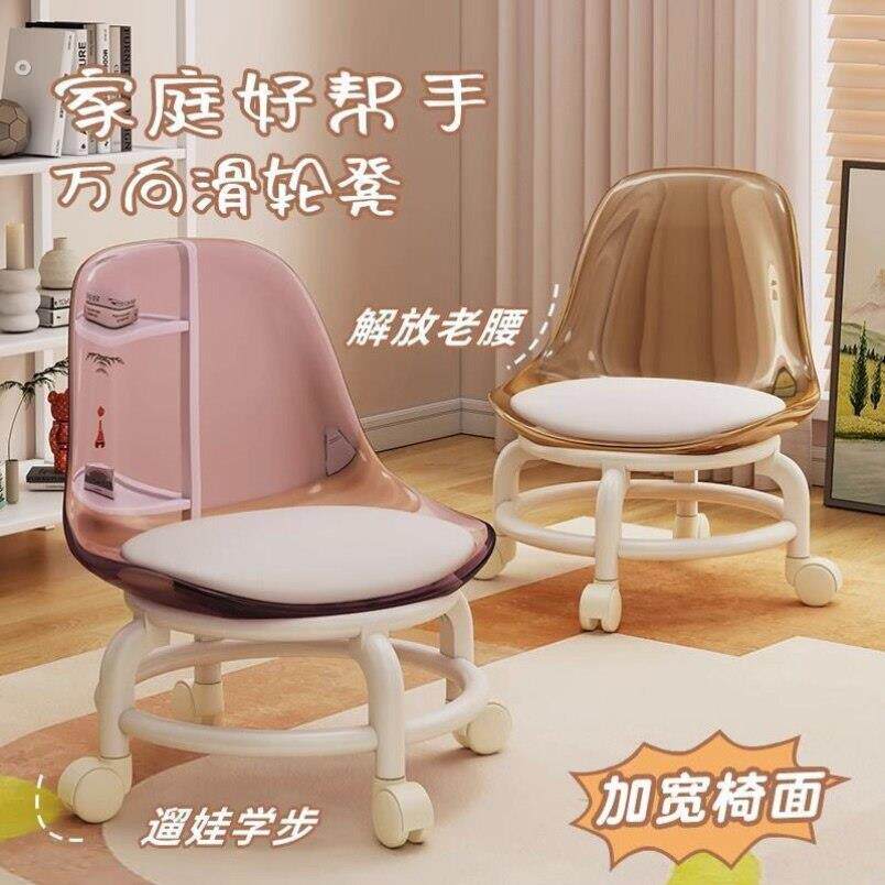 压克力家用万向轮美缝静音凳子儿童带娃学步矮凳凳网小椅子滑轮
