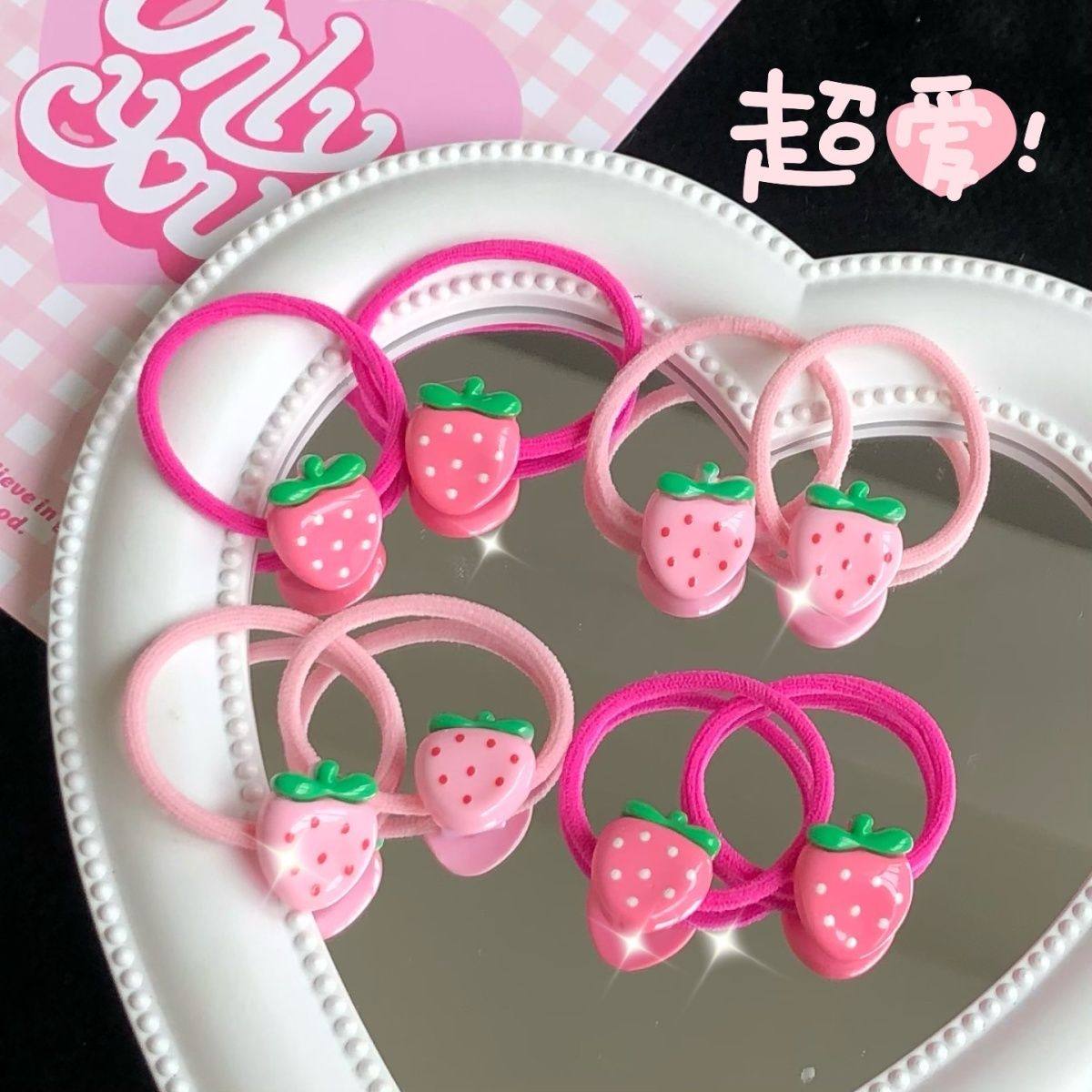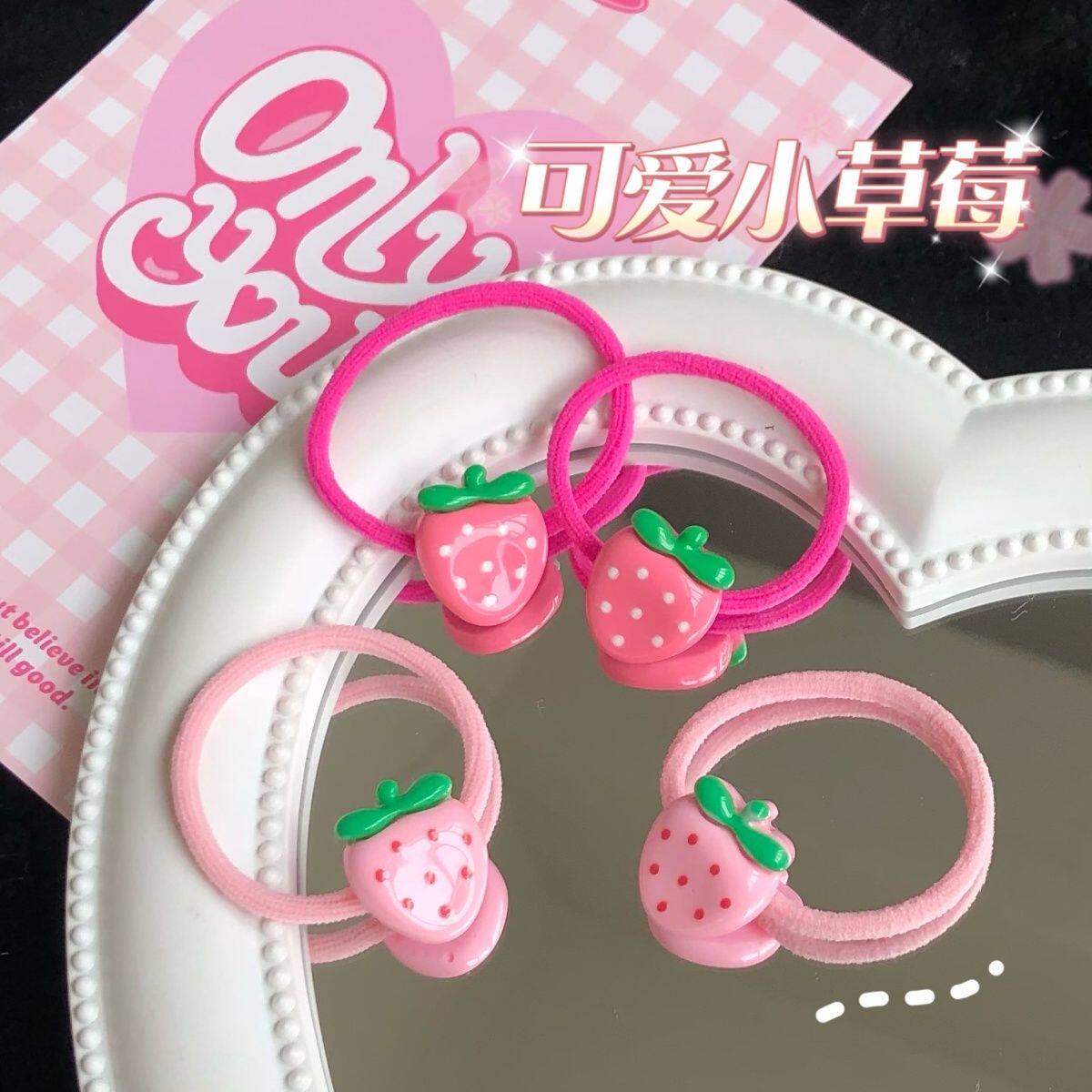 可爱小草莓拇指发圈ins少女心粉嫩发绳日韩儿童水果甜美发饰皮筋
