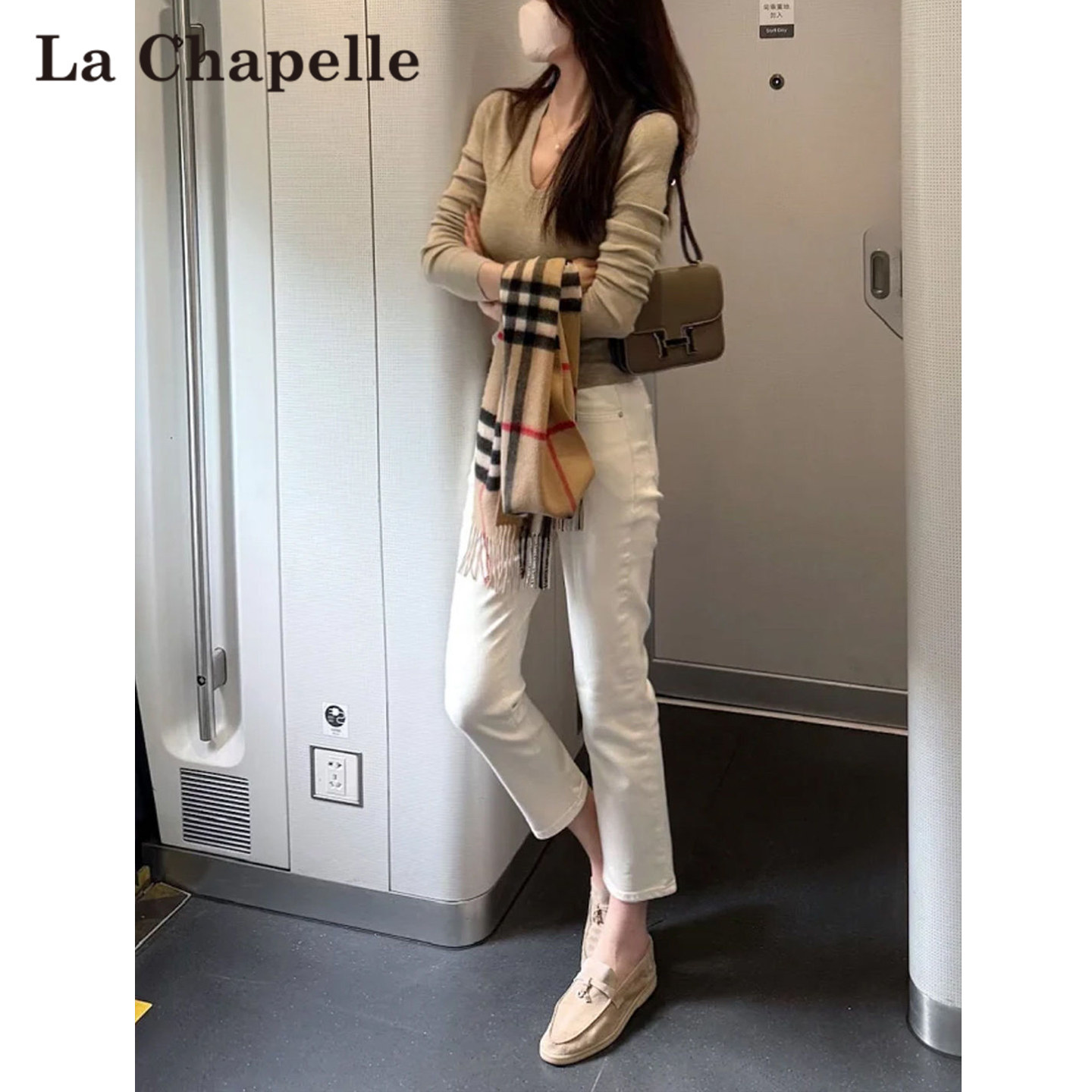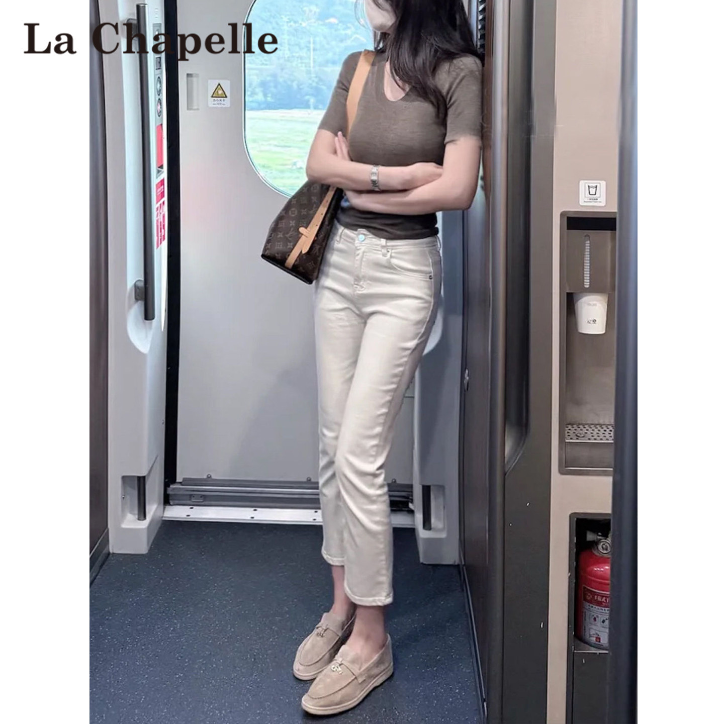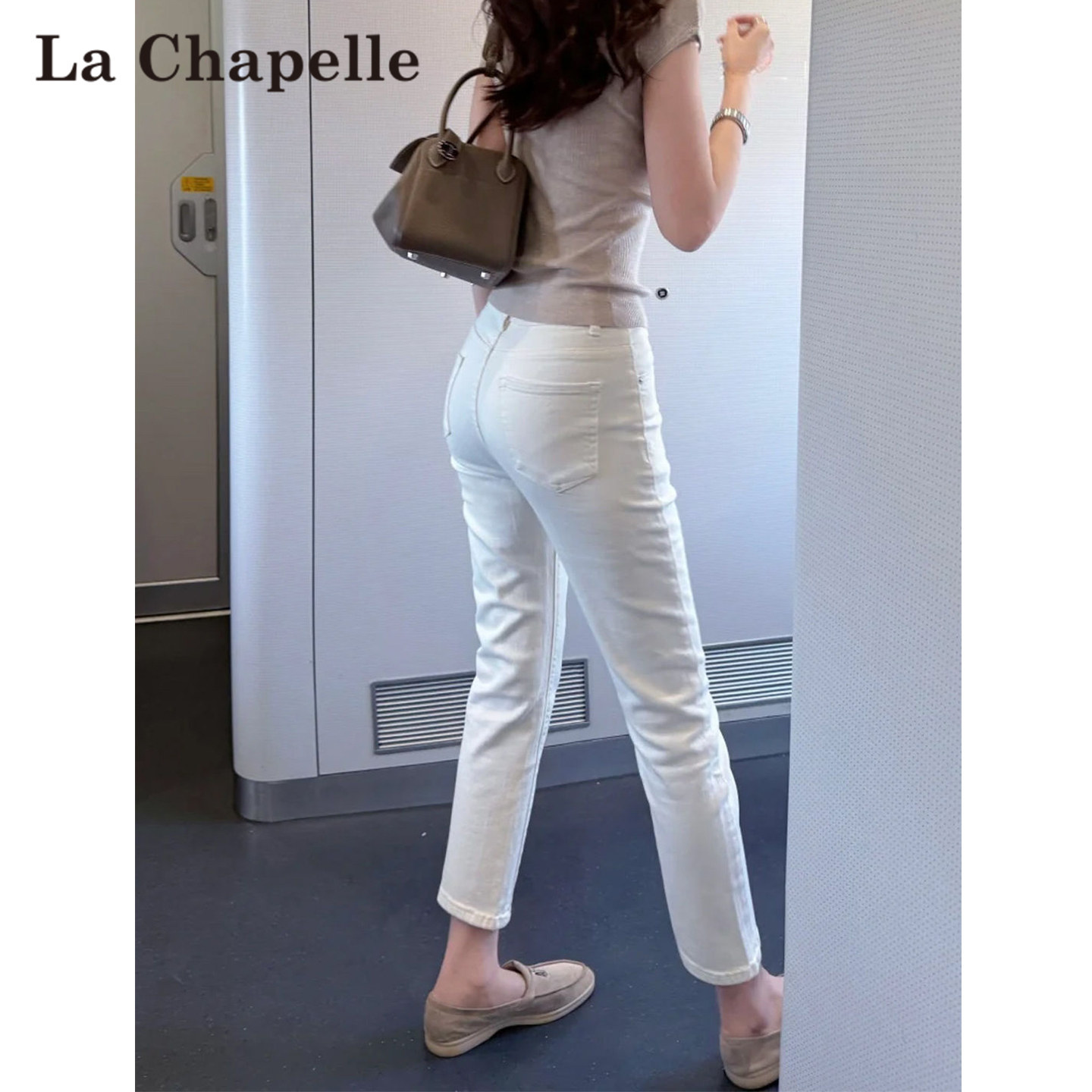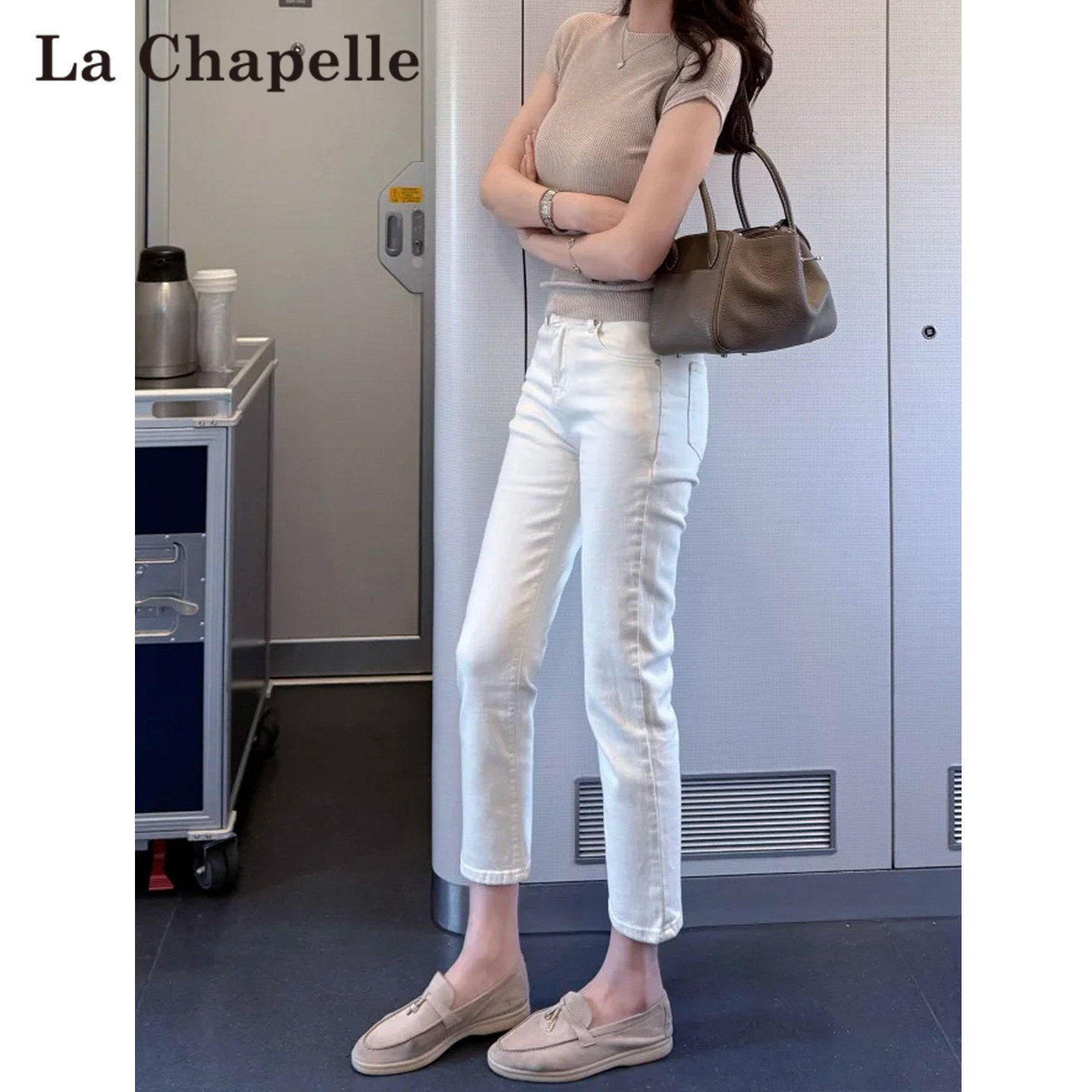 拉夏贝尔白色直筒牛仔裤女春秋2026新款显瘦百搭小个子烟管九分裤