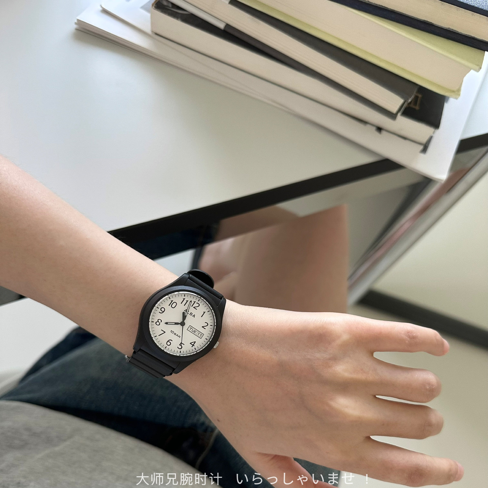 日本Seiko精工ALBA极简小黑表 学生静音考试手表带日期/星期/夜光