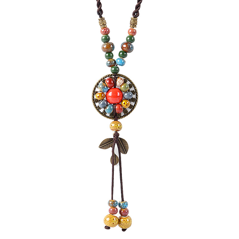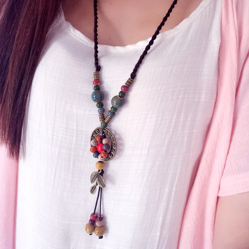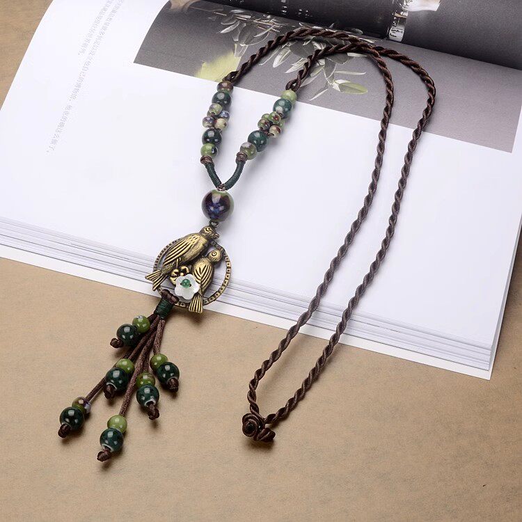 复古链项链配饰棉麻复古文艺民族风女生挂件饰品衣服装饰配件女款