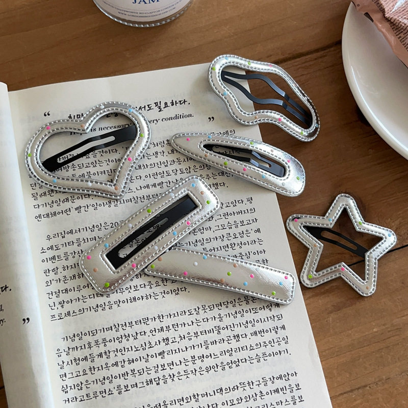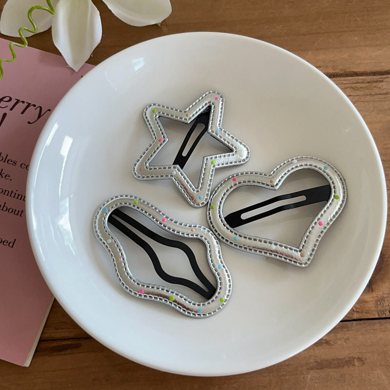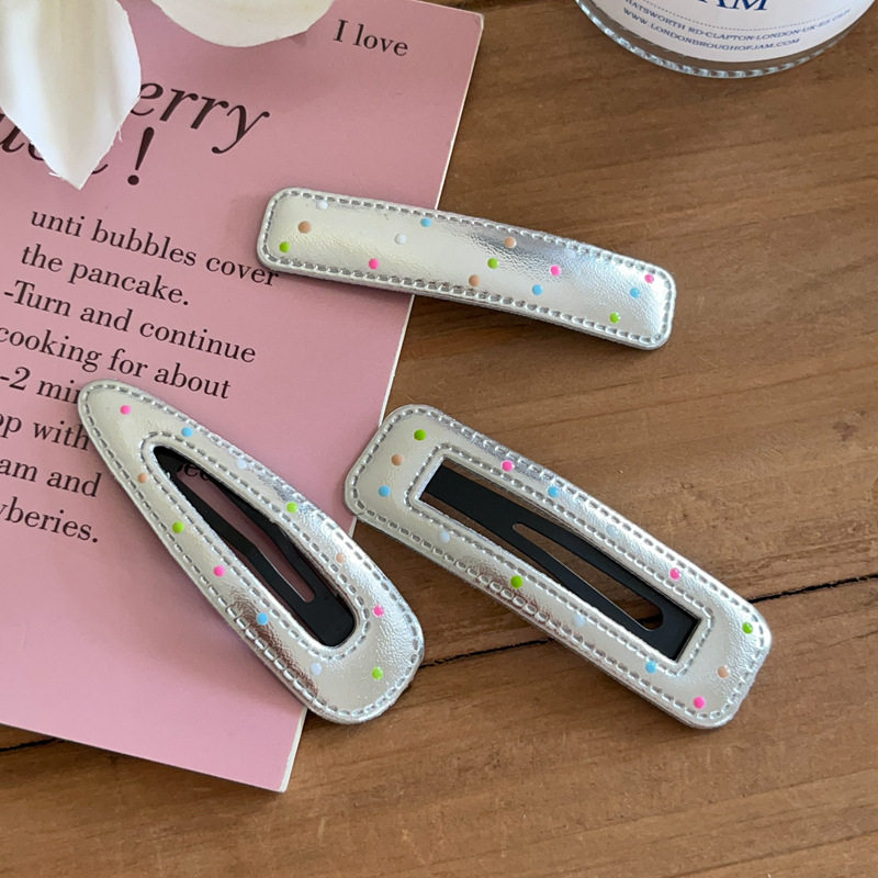 银色皮质pu皮彩色波点星星水滴云朵bb夹侧边边夹发卡发饰头饰新款