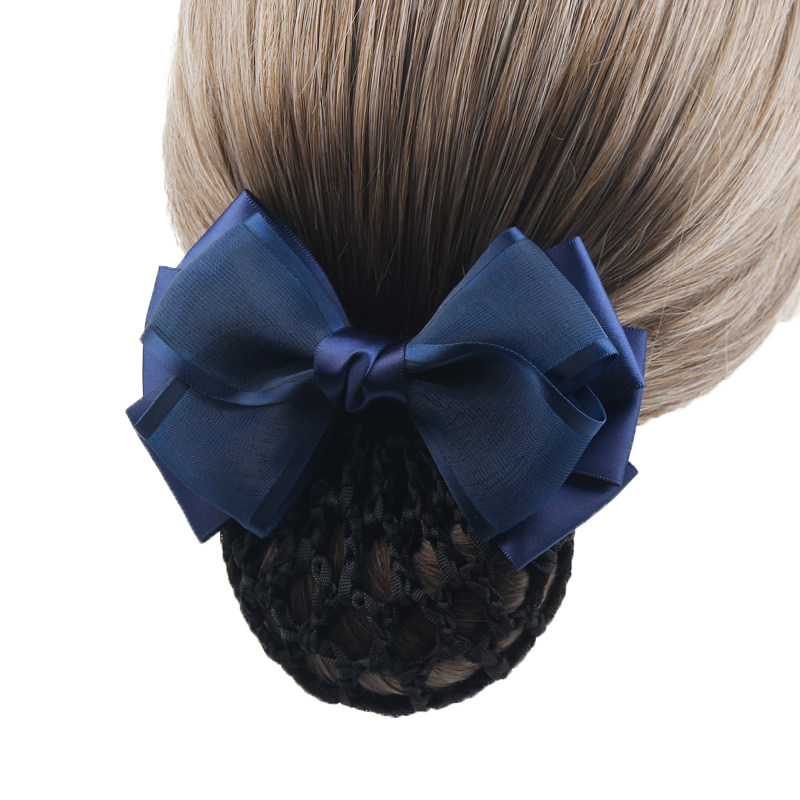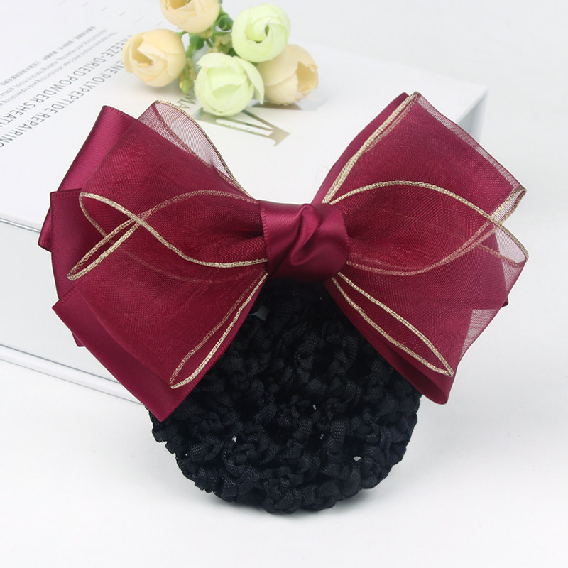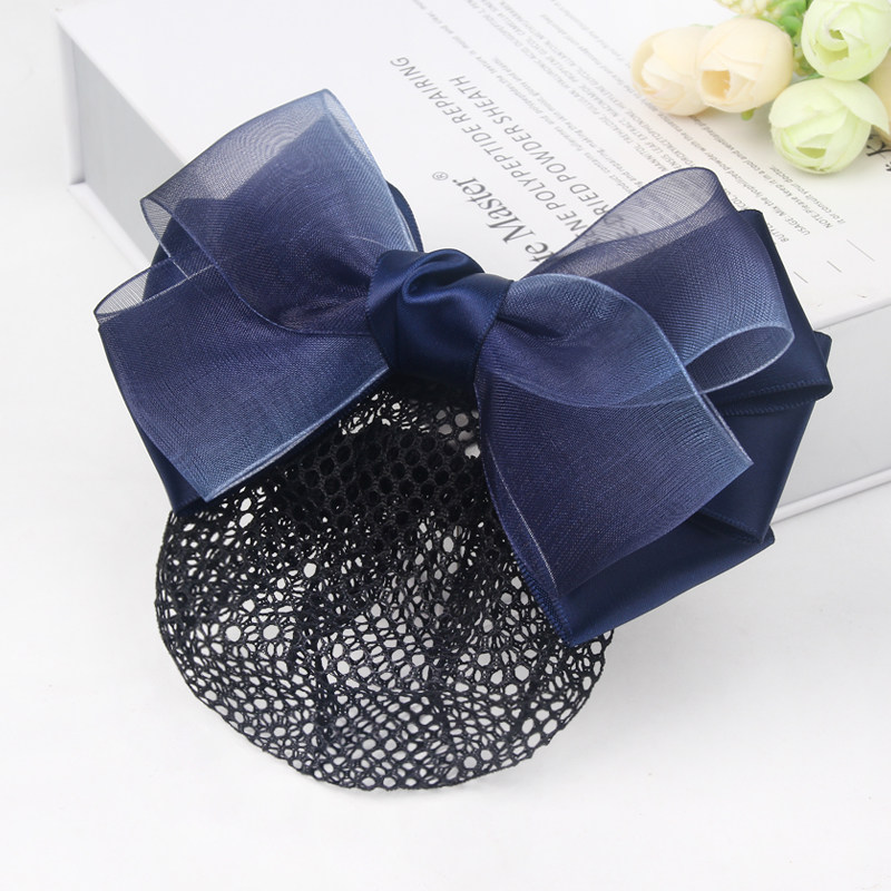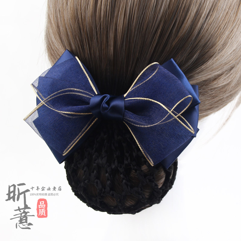 职业头花女盘发空姐发饰护士绢纱蝴蝶结发网工作上班发夹网兜头饰