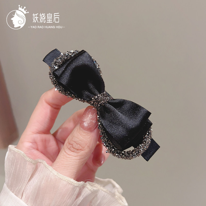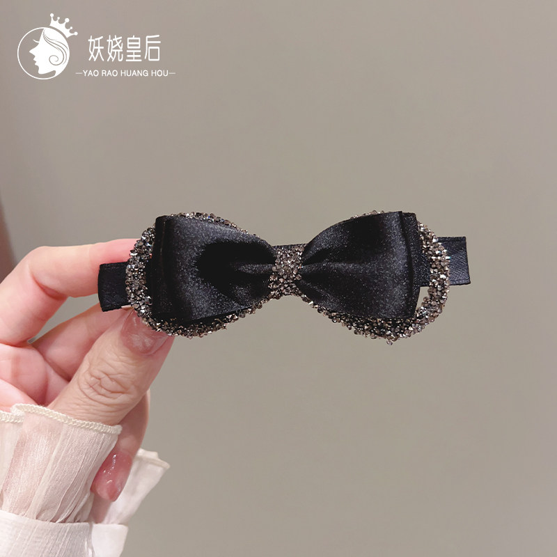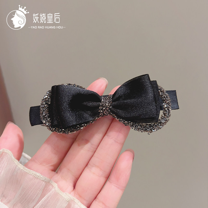 轻奢质感蝴蝶结发夹小香风黑色一字夹后脑勺盘发半扎发弹簧钢夹女