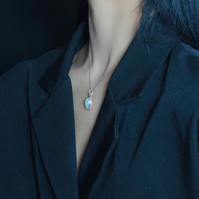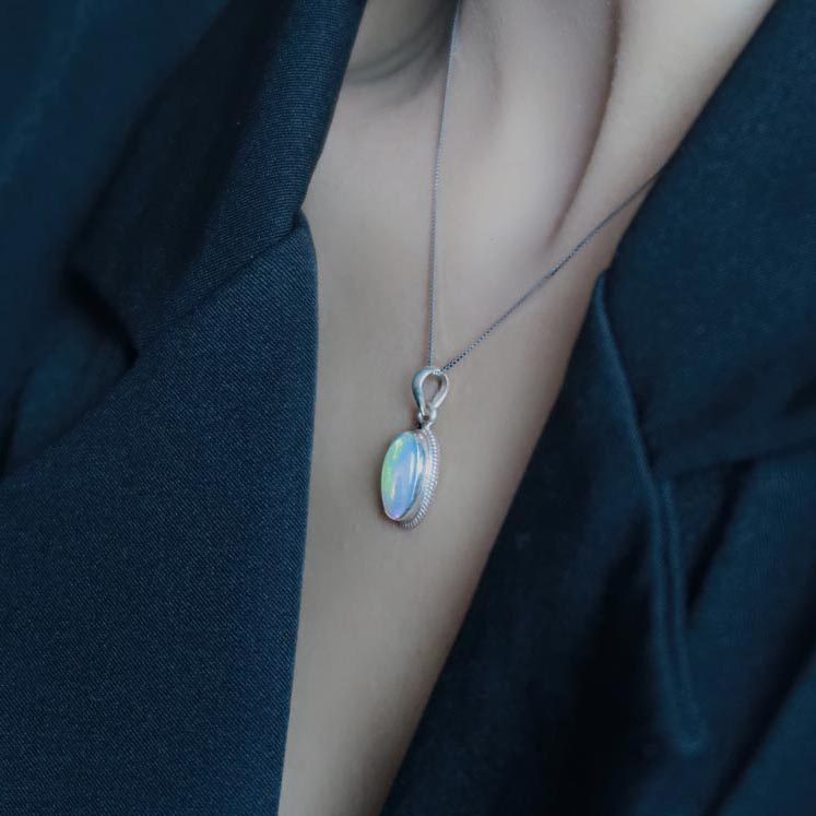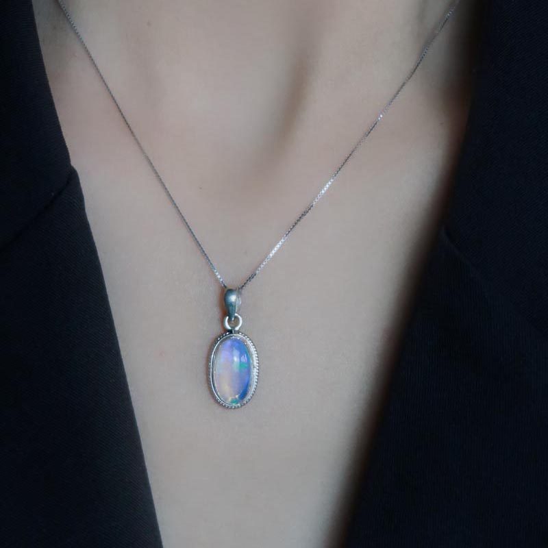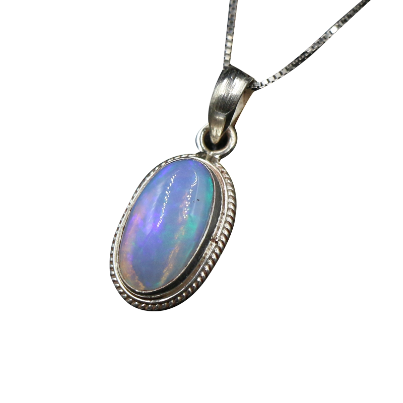 尼泊尔手工银饰品欧泊石吊坠项链女个性复古简约气质百搭款民族风