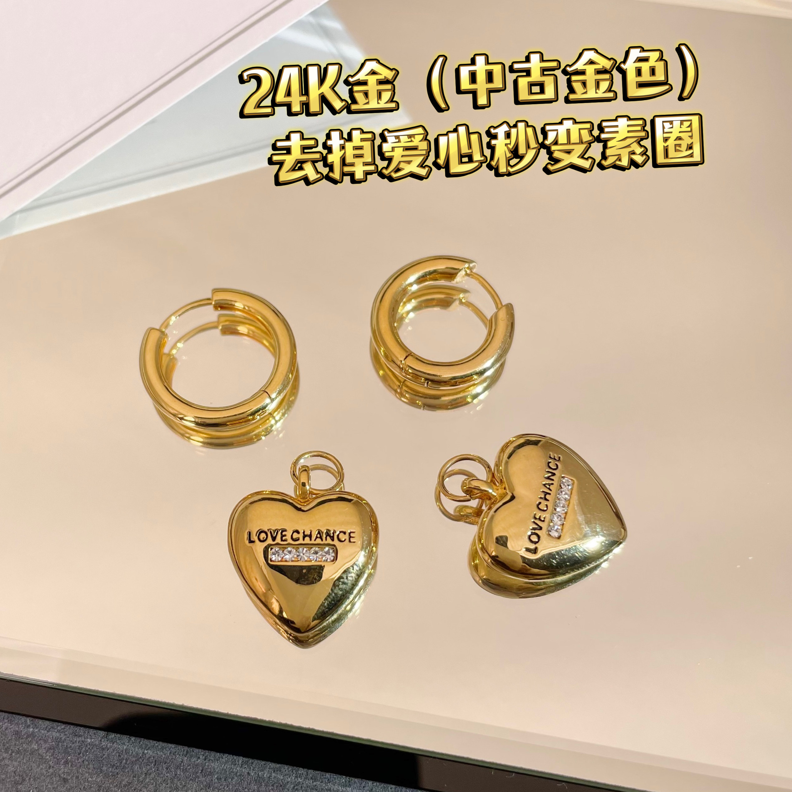 欧比雅比24k铜镀金高级感耳环桃心爱心耳饰精致简约气质金属银针