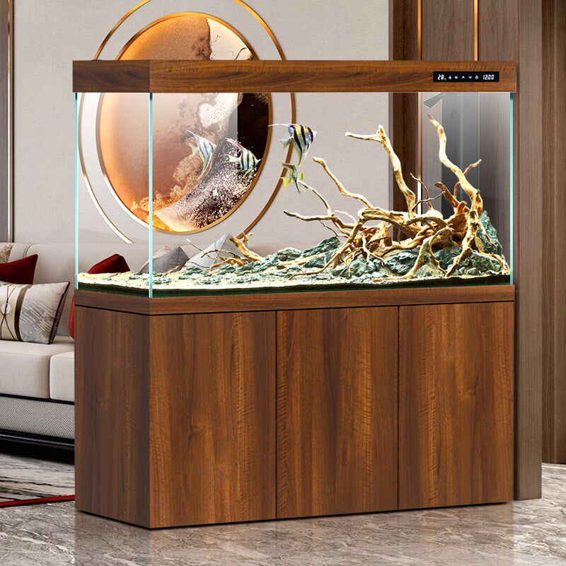 汉霸超白玻璃鱼缸客厅2024新款家用大型龙鱼缸屏风底过滤金鱼缸