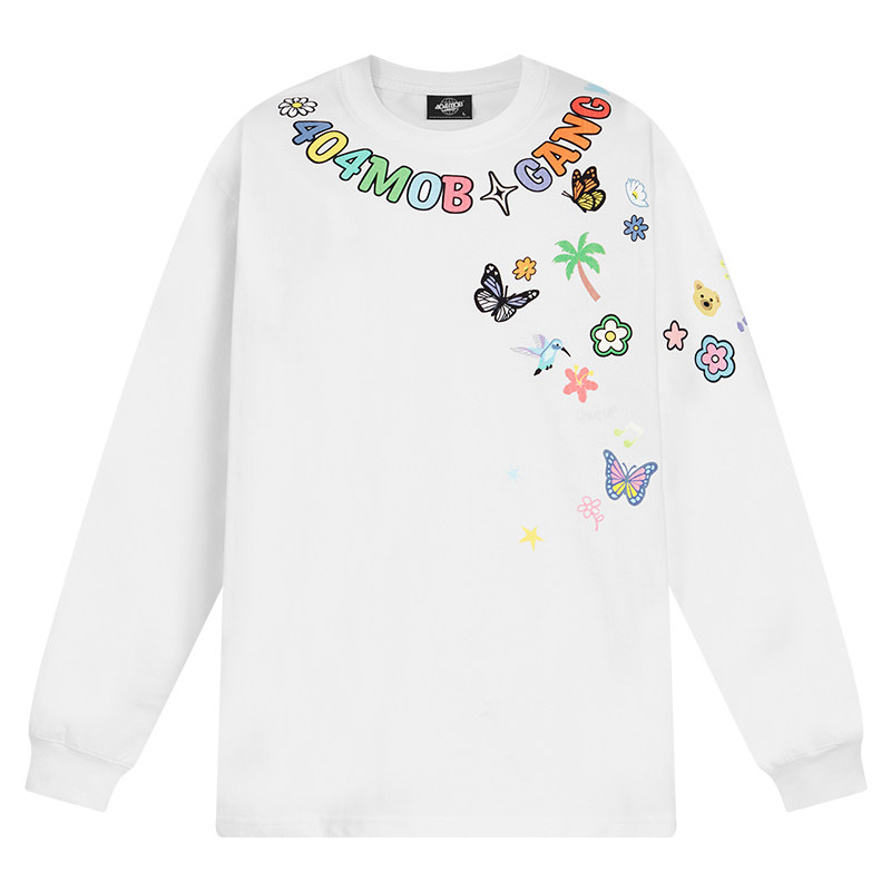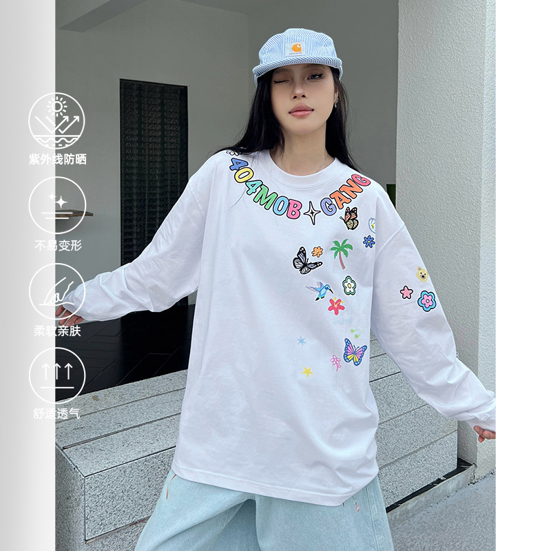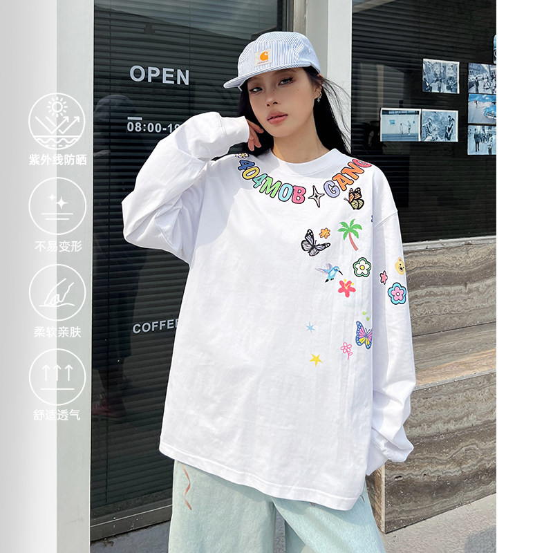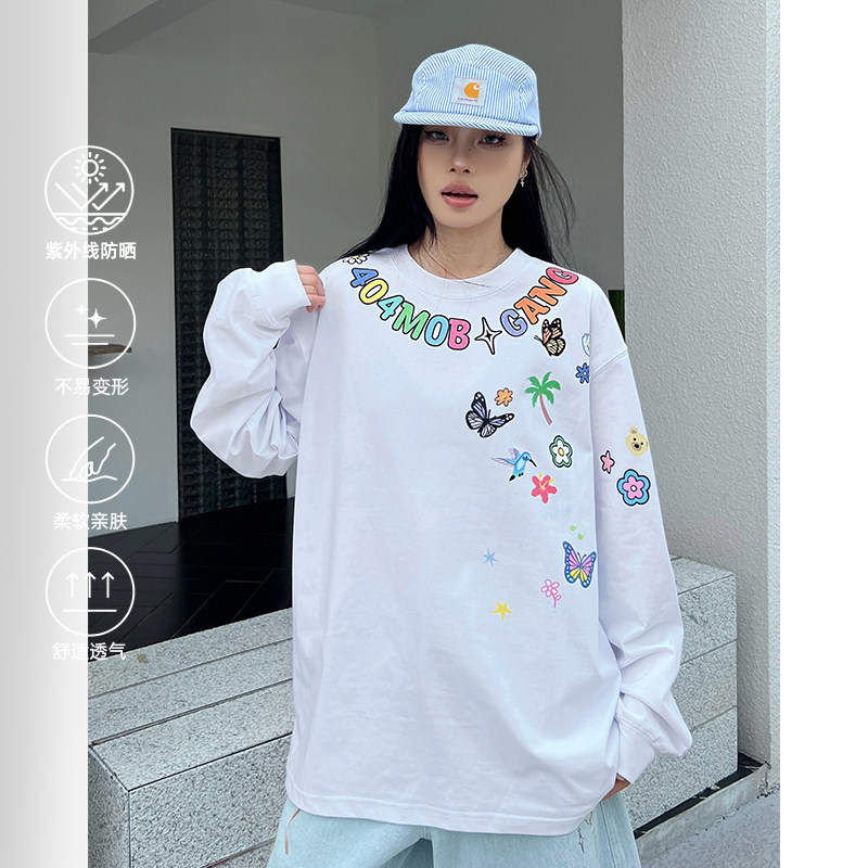 [赵品霖同款]404MOB趣味卡通字母涂鸦印花长袖T恤男美式情侣上衣