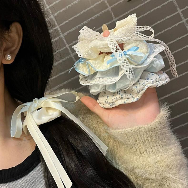 甜美韩系蝴蝶结碎花大肠发圈女2026新款蕾丝发绳少女气质扎头发饰