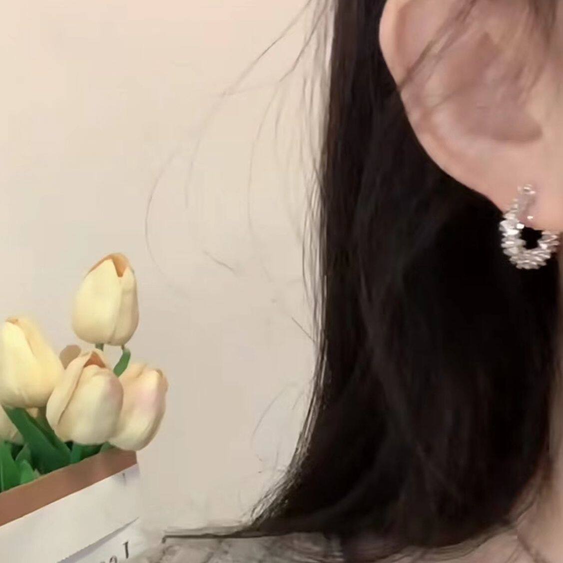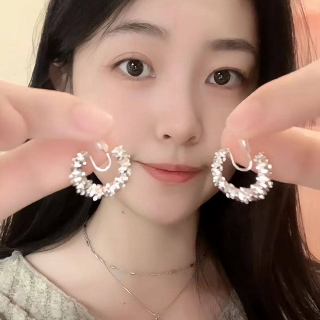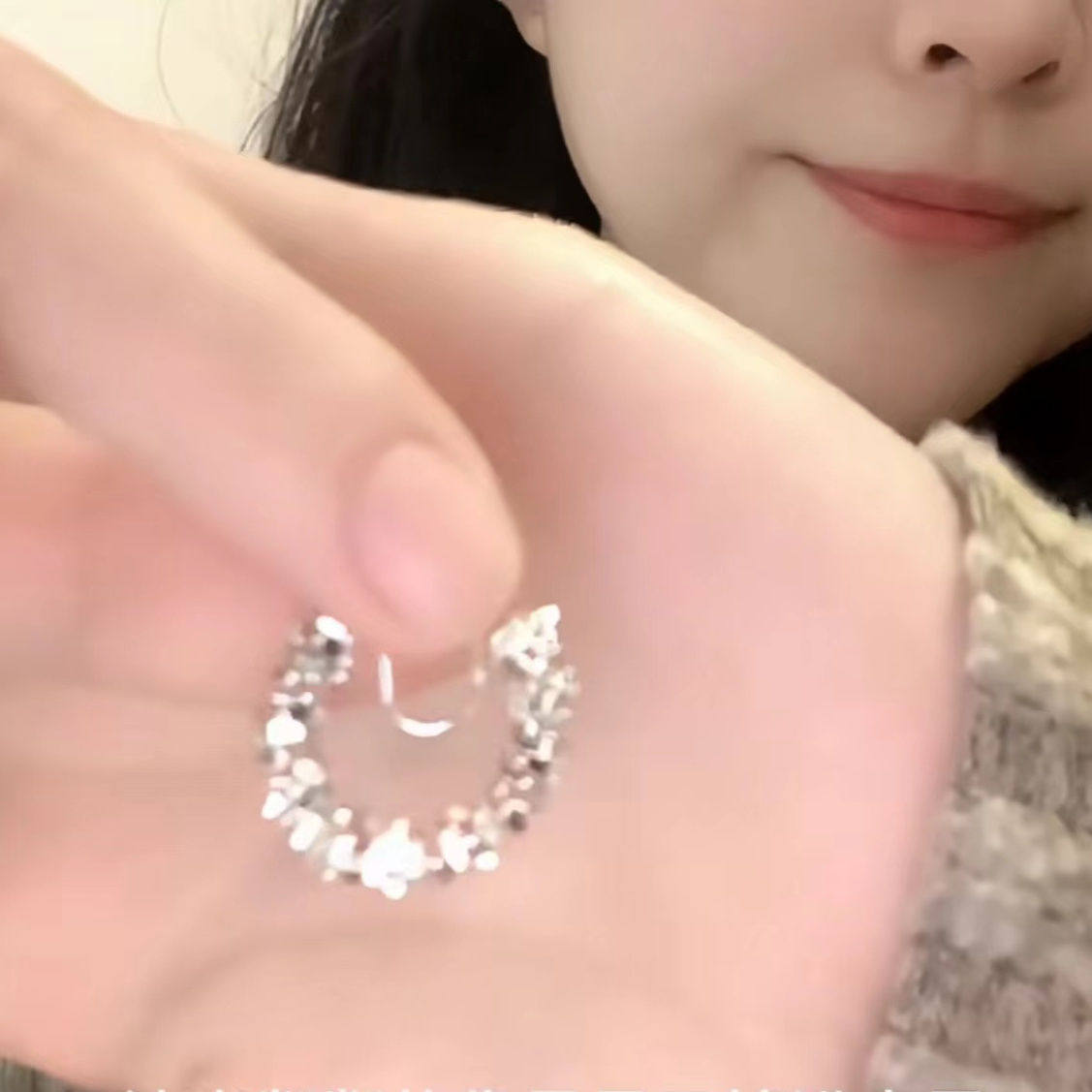 波光粼粼金属耳圈碎银子无耳洞蚊香盘耳夹女小众2025新款耳钉耳饰