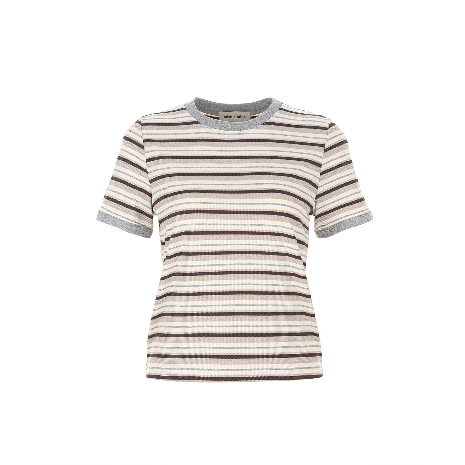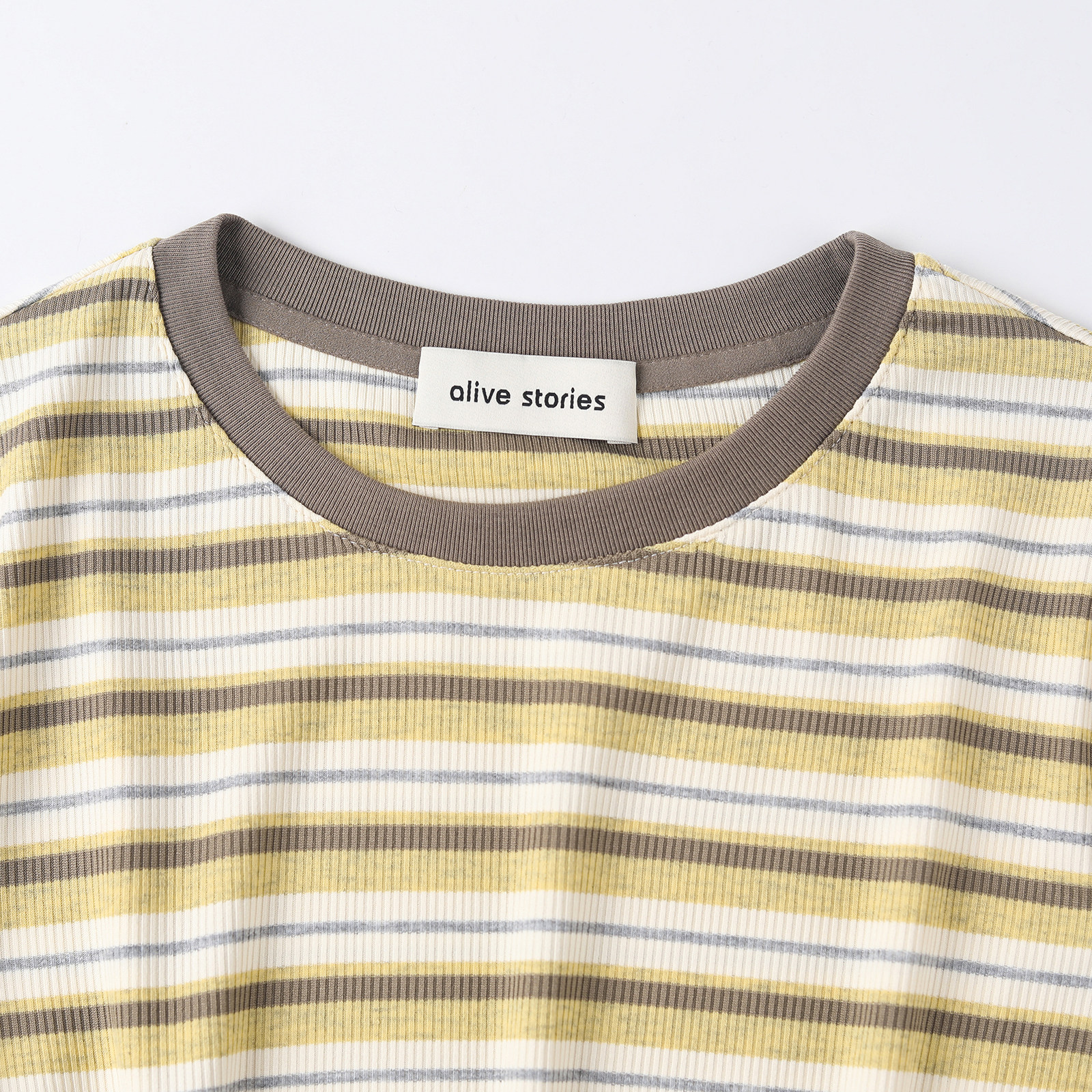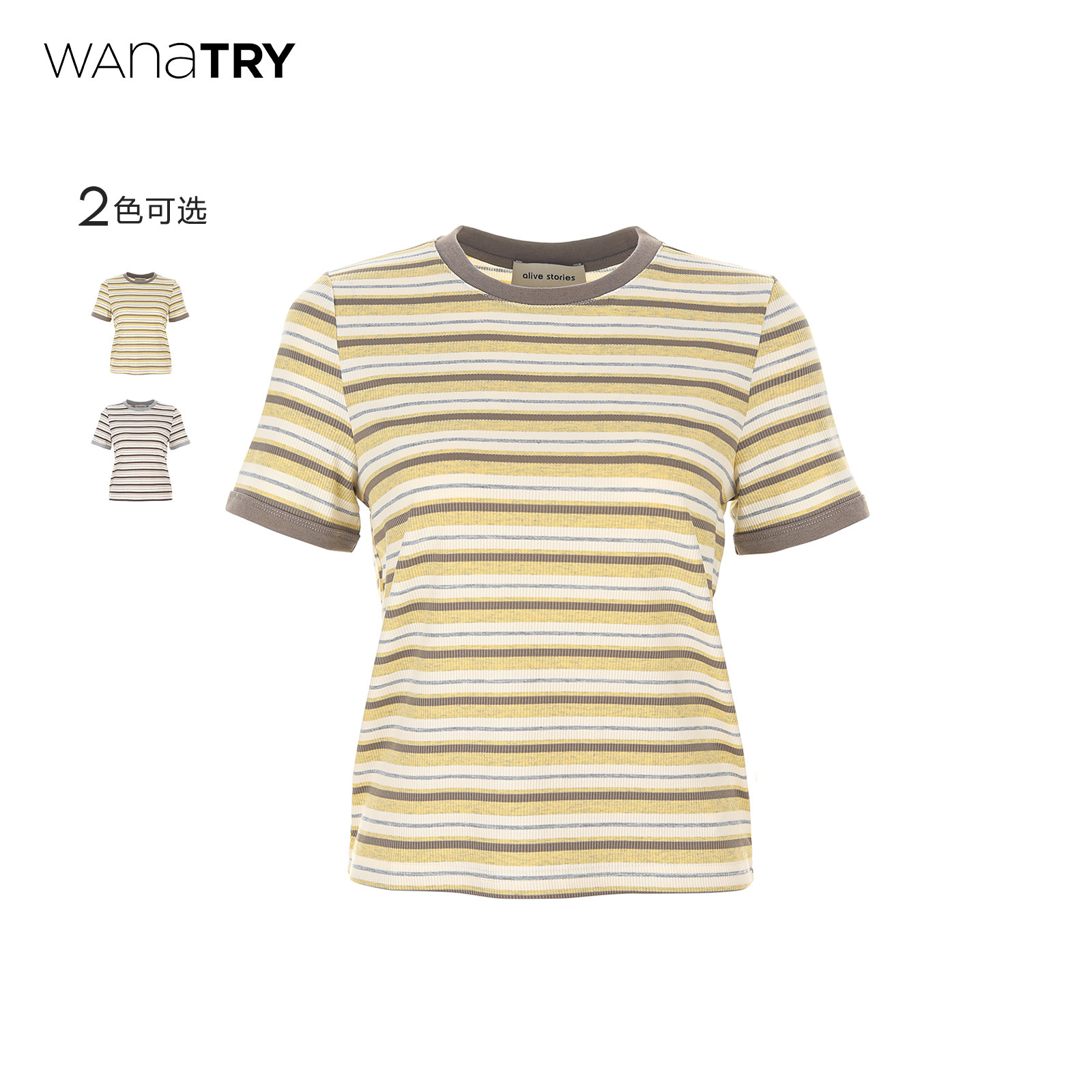 wana try拼色条纹显瘦T恤26春季新品韩系休闲百搭上衣女