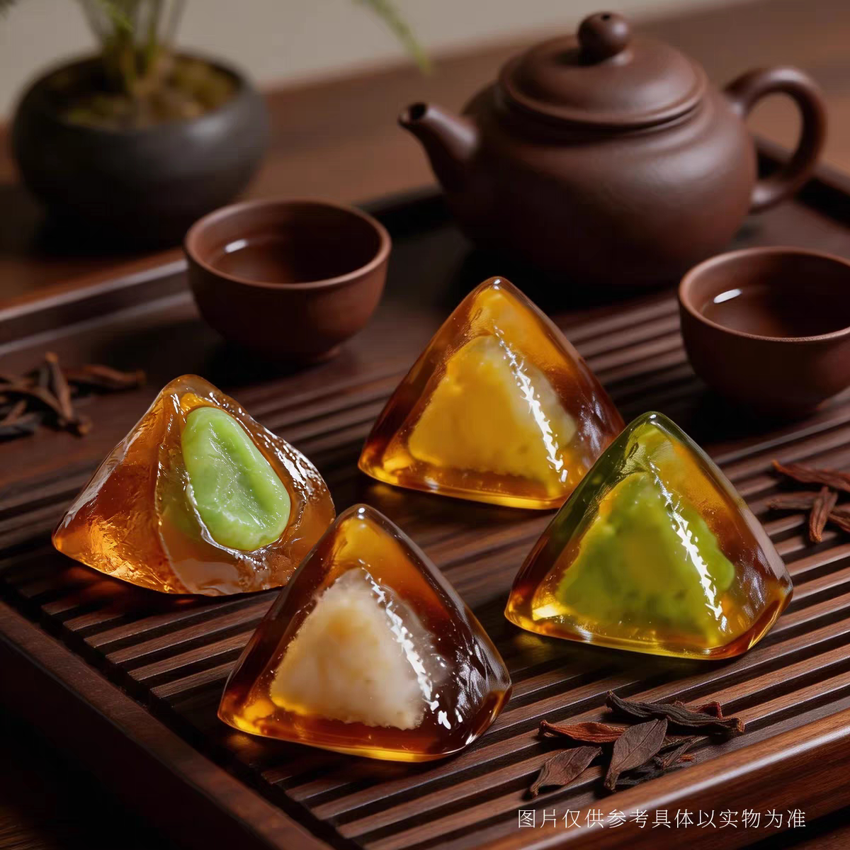 茶汤水晶粽子端午点心冰皮水晶甜冰心粽子水果味透明开袋即食粽子