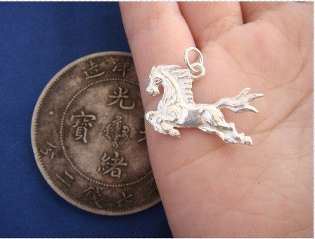 足银马坠子 手工加工 双面 实心奔马吊坠