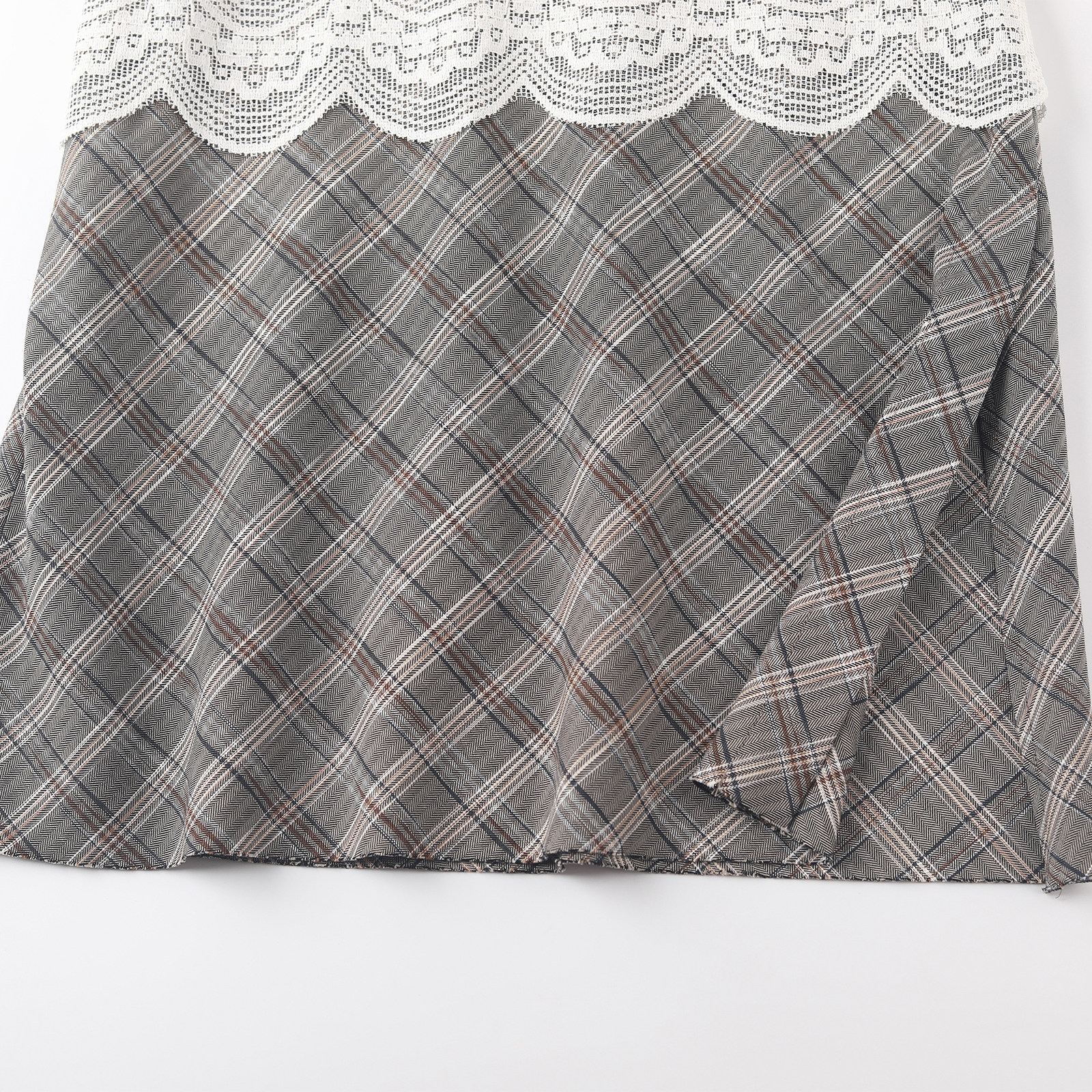 wana try醋酸设计感蕾丝拼接中长裙2025年夏新款休闲百搭半身裙女