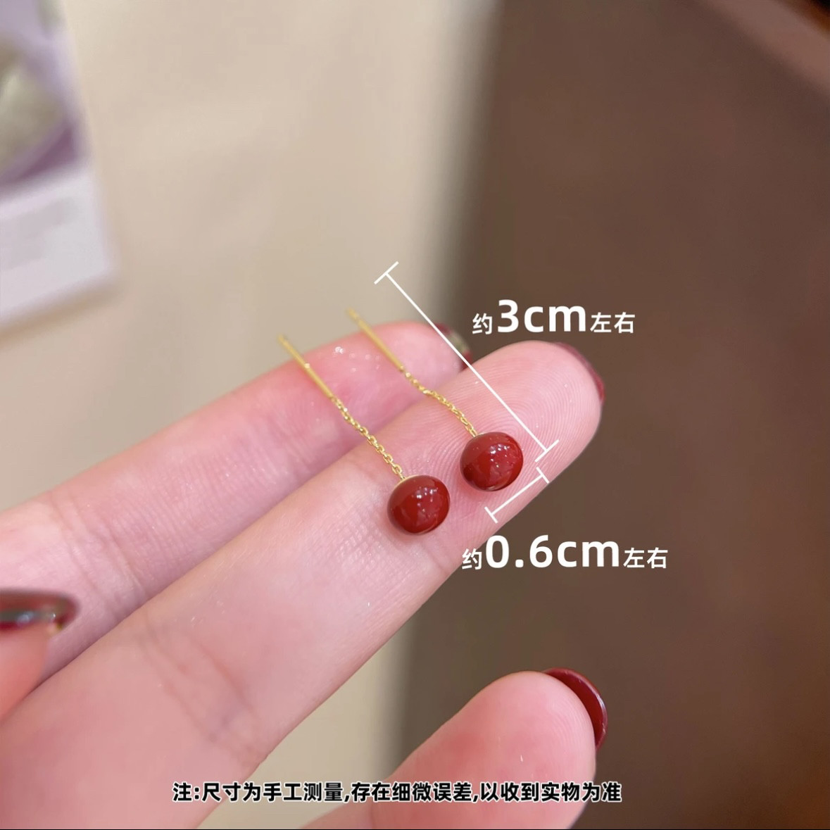 925银针耳线2025新款爆款高级感耳环女红豆流苏耳饰小众设计耳坠
