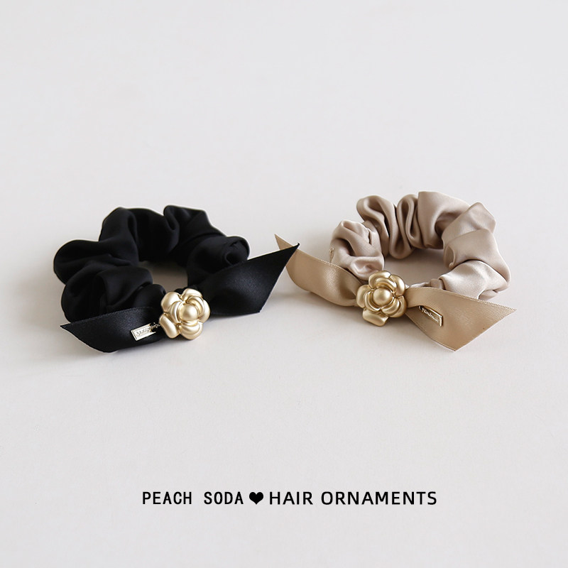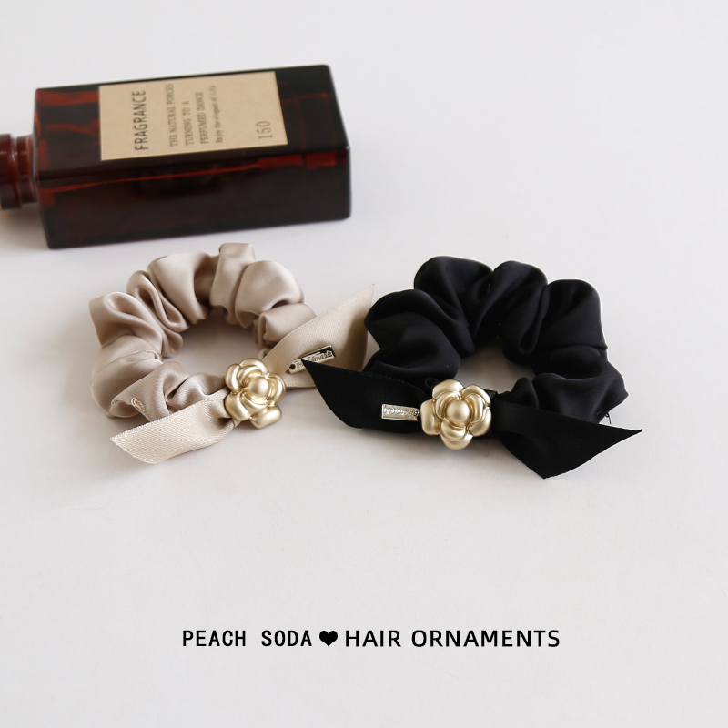 法式高级感金属哑光山茶花头绳大肠圈气质扎头发绳网红发饰女皮筋