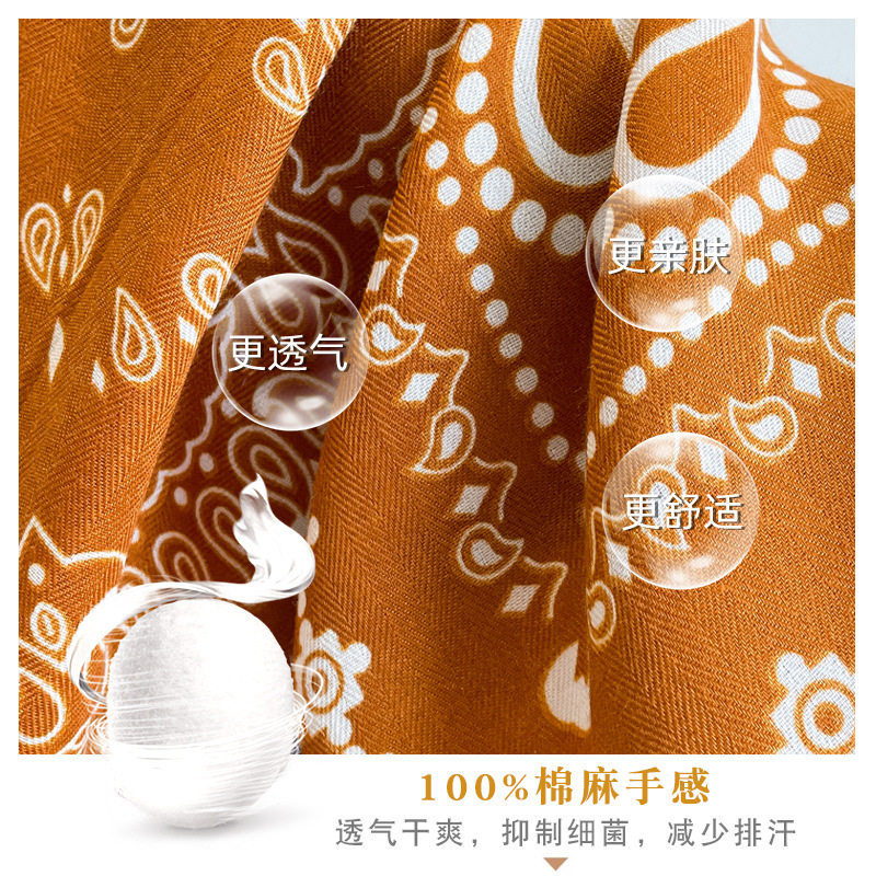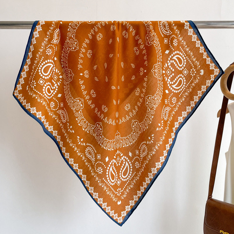 橙色腰果花棉麻发带丝巾70小方巾女薄款围巾领巾亚麻头巾百搭衬衫