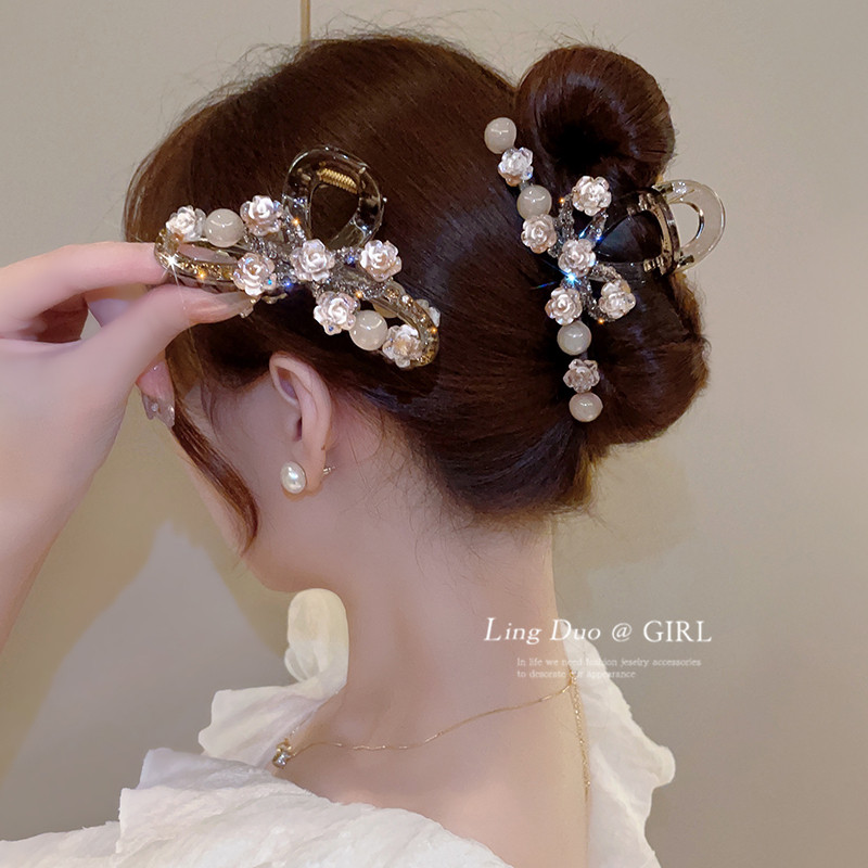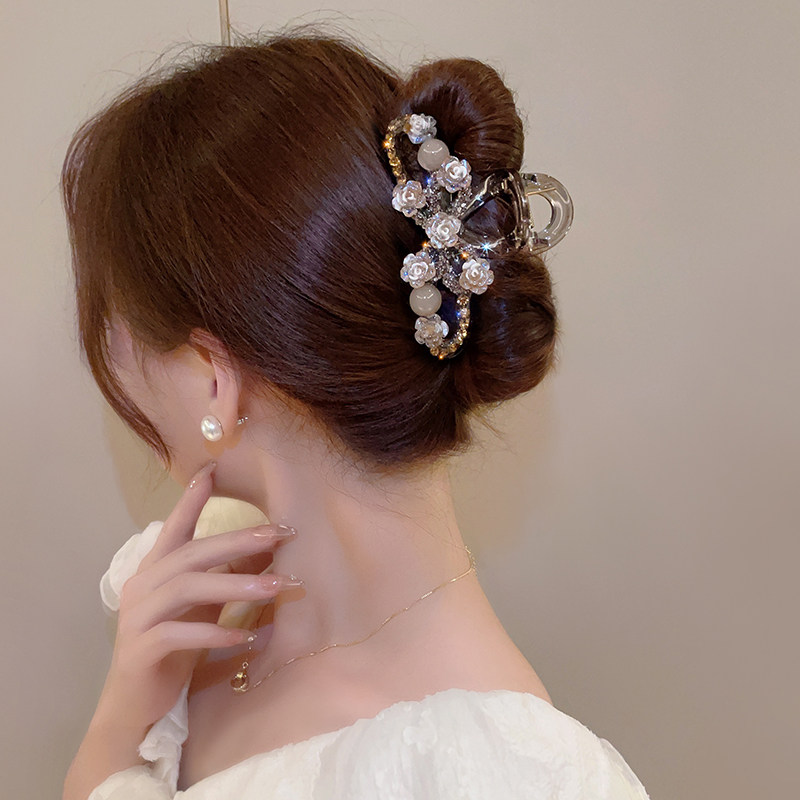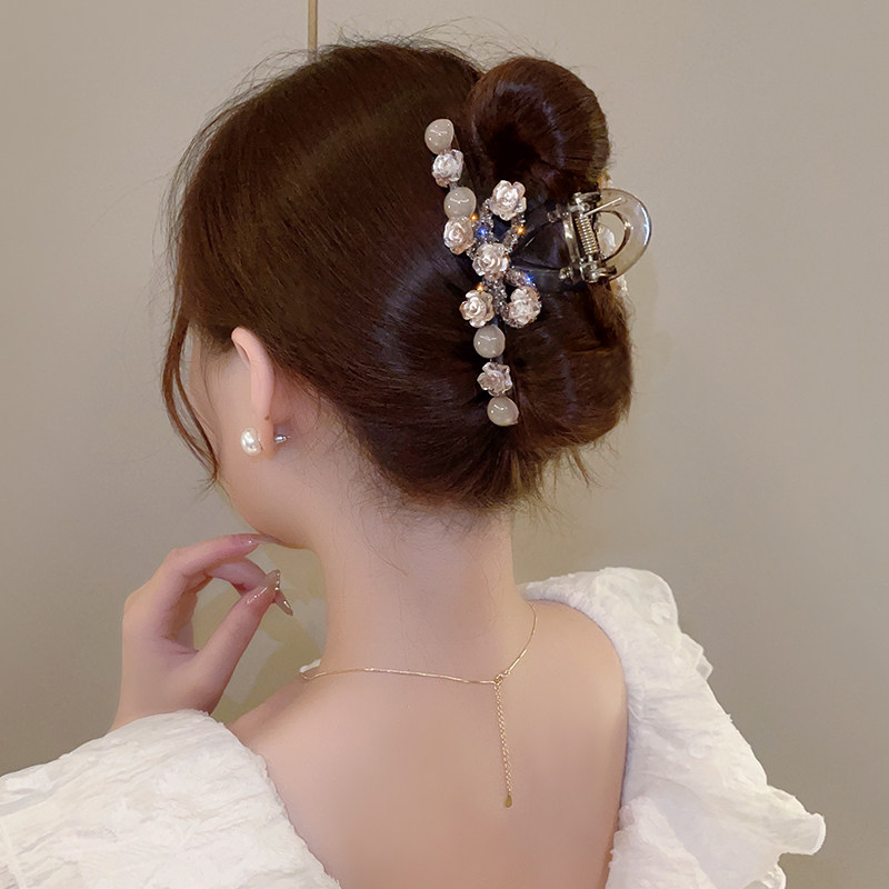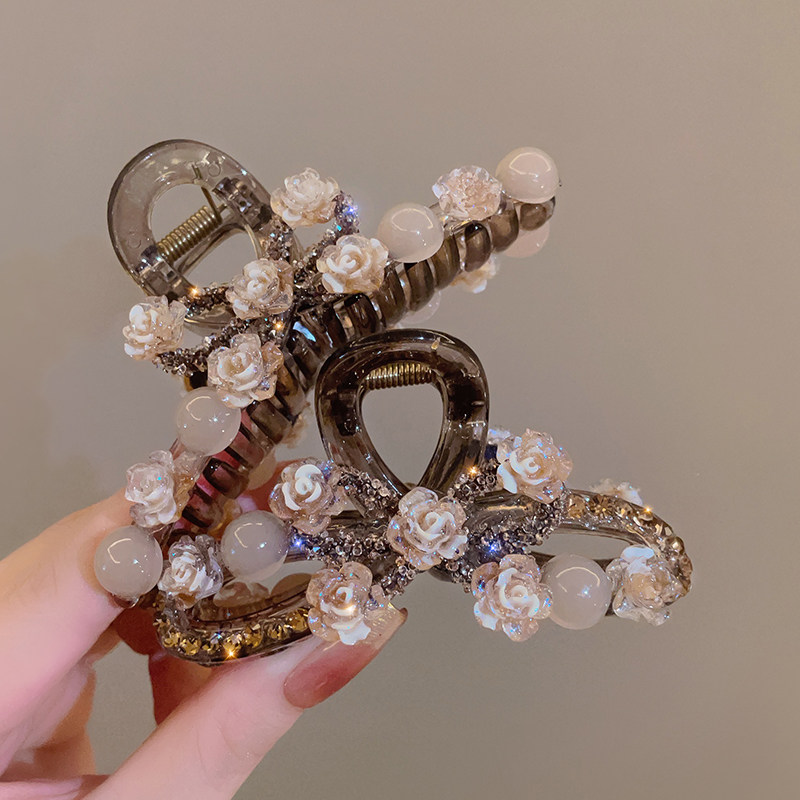 轻奢玫瑰花大号亚克力抓夹女气质镶钻后脑勺盘发夹百搭新款鲨鱼夹