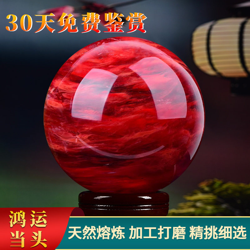 天然红色水晶球原石鸿运当头风生水起高档办公室招财转运属火摆件
