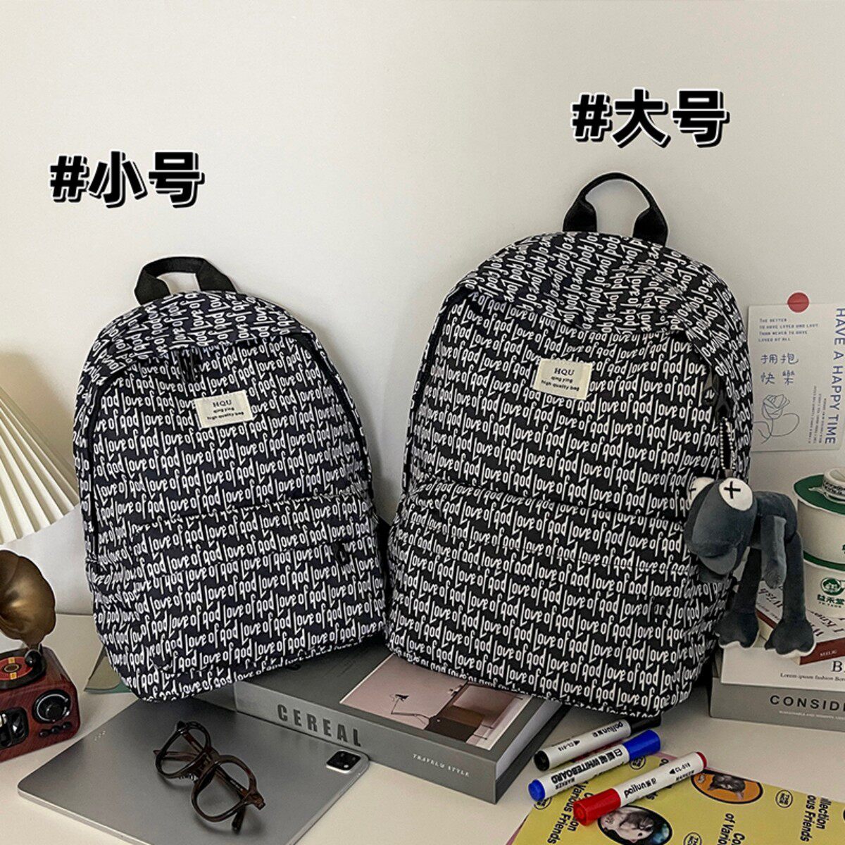 FEO潮酷满印背包高颜值学生书包印花男女大容量旅行包