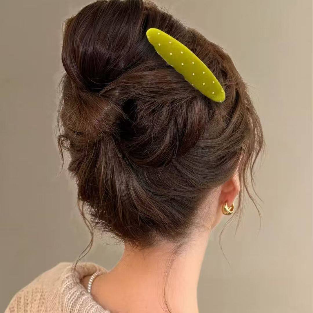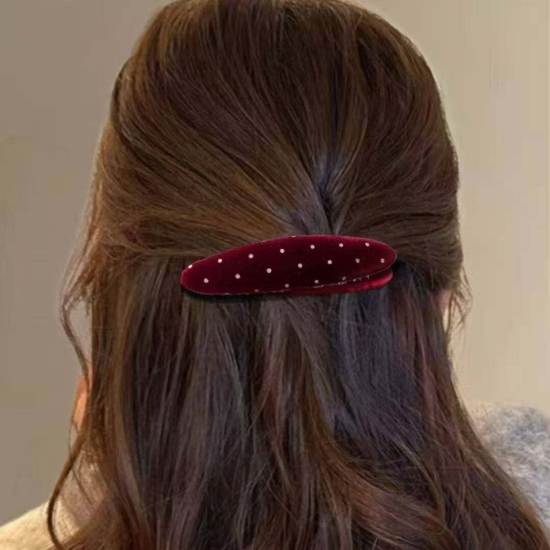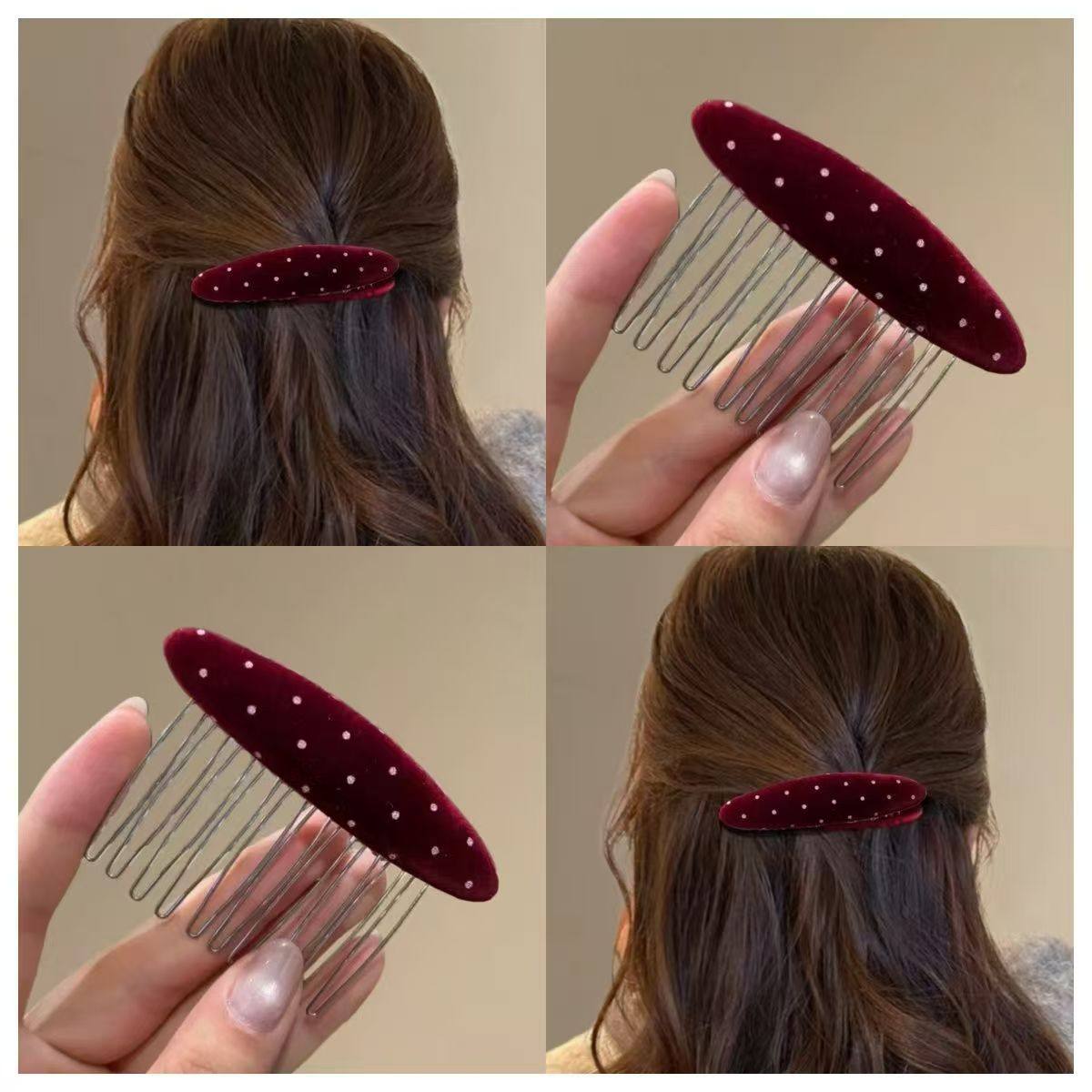 新款发梳边发夹波点插梳刘海夹发夹女丝绒椭圆形后脑勺发饰高级感
