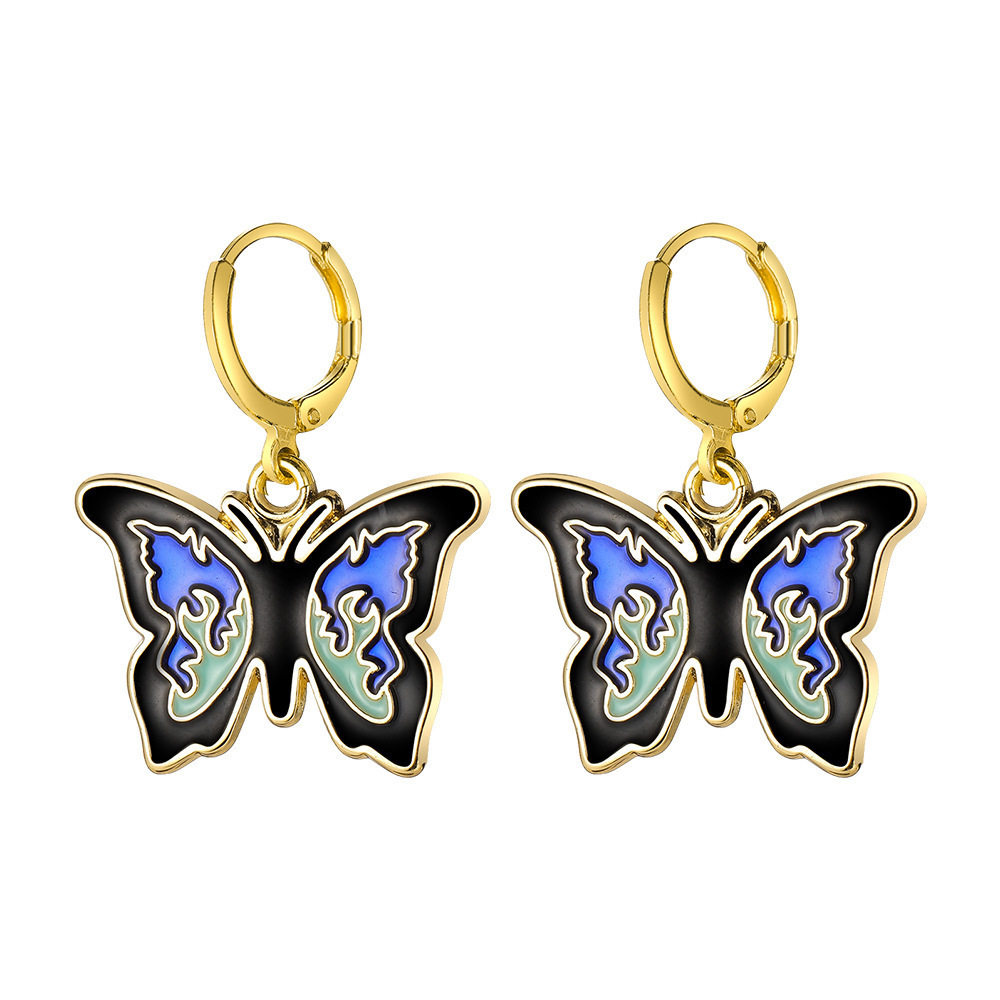 Butterfly oil dropping Earrings women 滴油粉色蝴蝶耳环耳饰品
