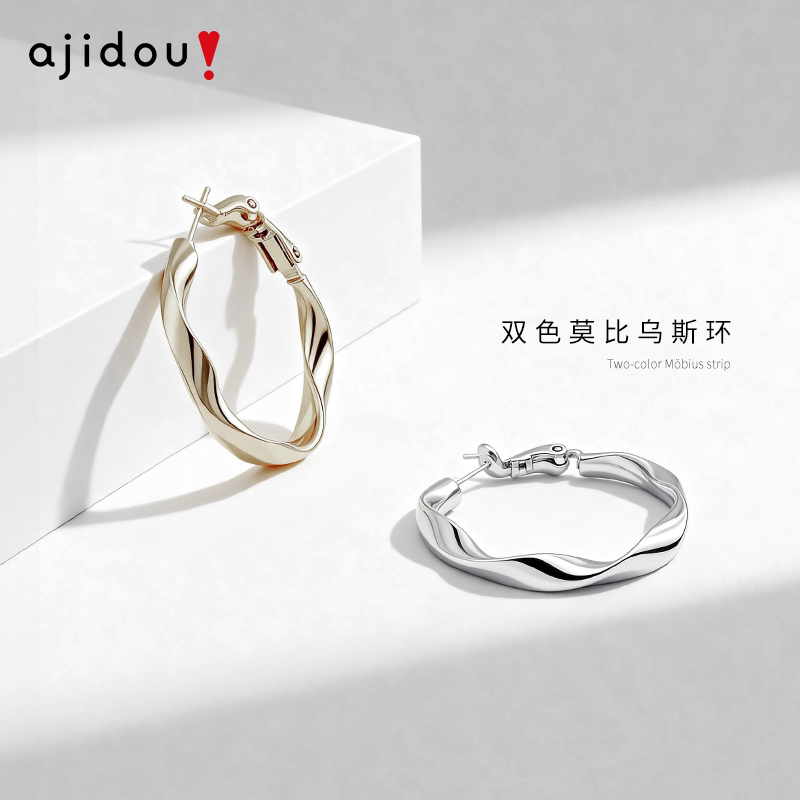AJIDOU阿吉豆耳圈女素圈大耳钉莫比乌斯小众轻奢耳饰爆款耳环饰品