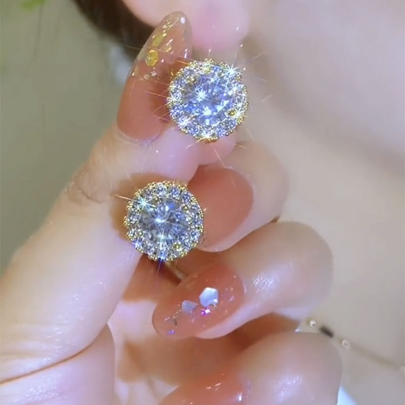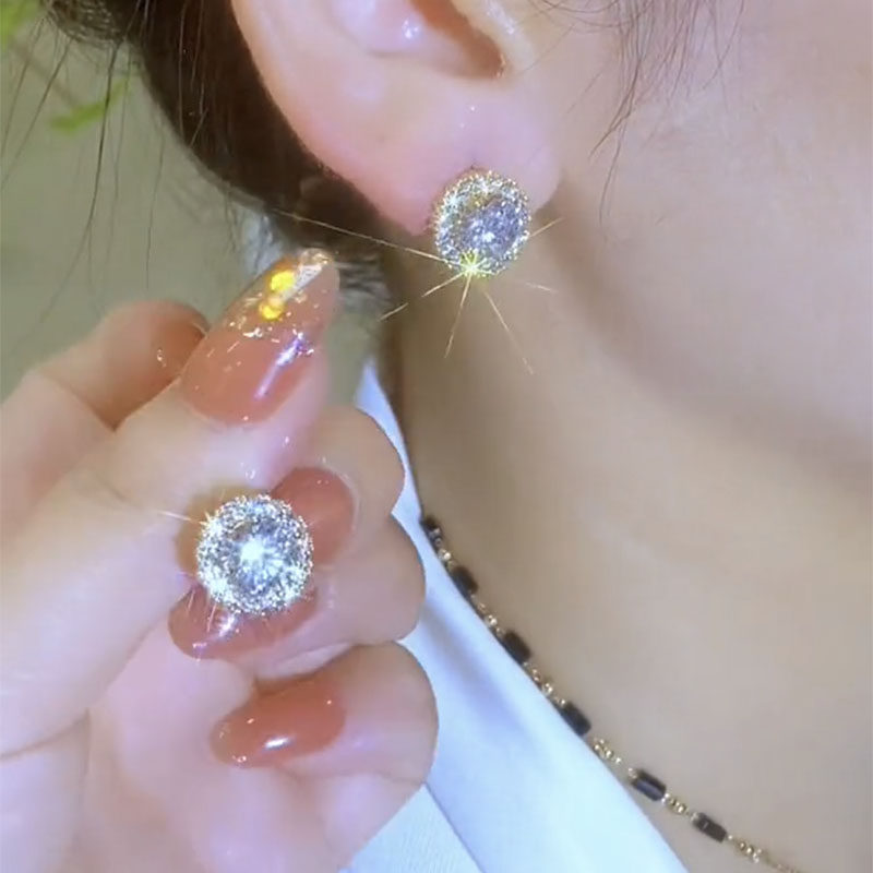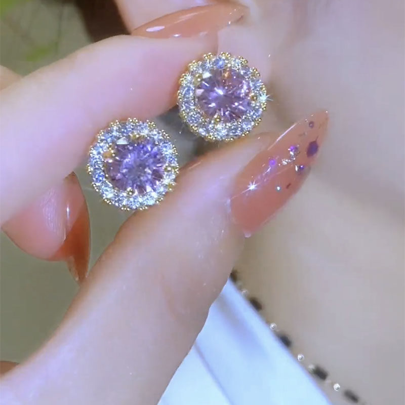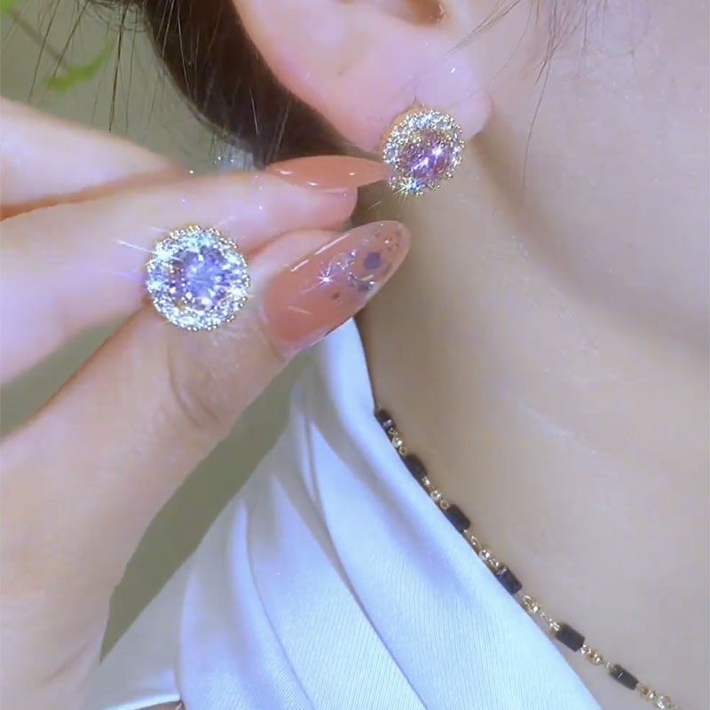 紫色锆石耳扣耳环韩国网红耳钉2026年新款潮时尚通勤百搭小巧耳饰
