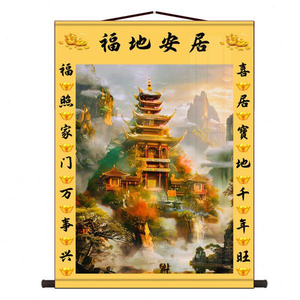 三尺三仙家堂口客厅山水画仙堂背景东北堂屋供奉山水画风景画挂画