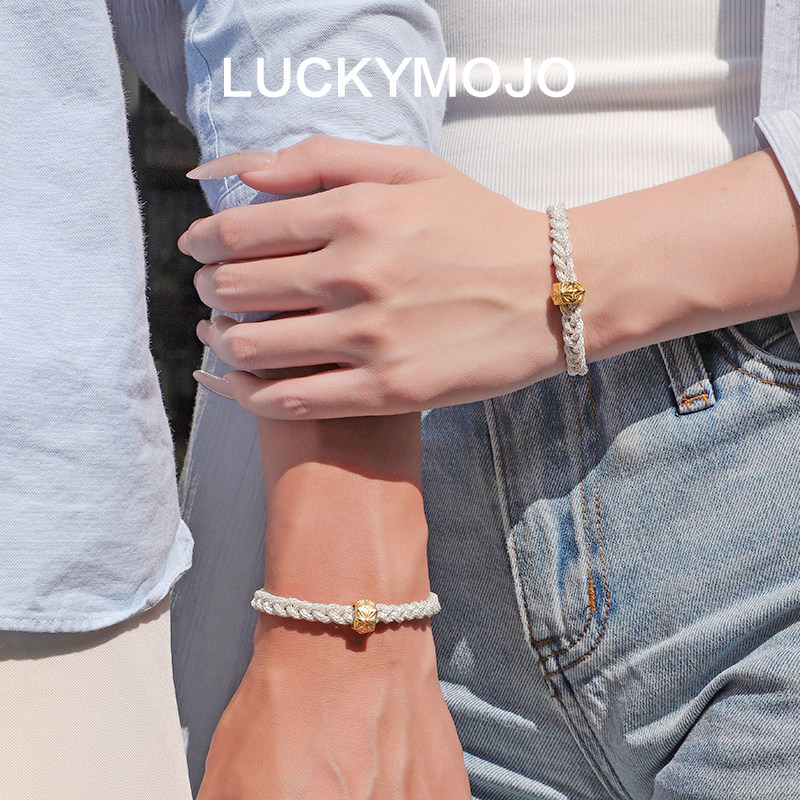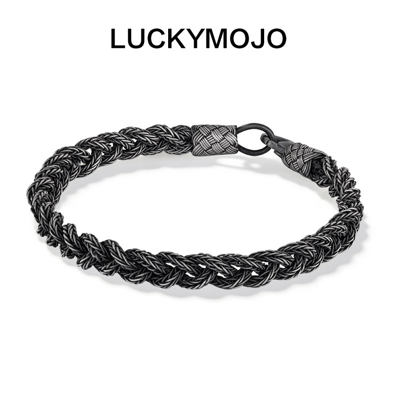 LUCKYMOJO土耳其古法编织工艺99足银手链麻花设计男女同款简约