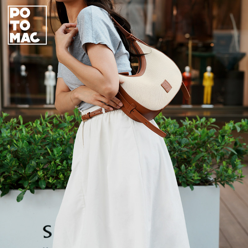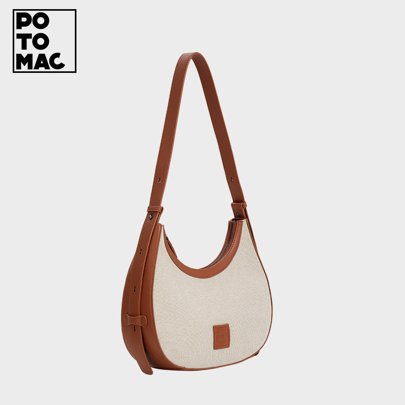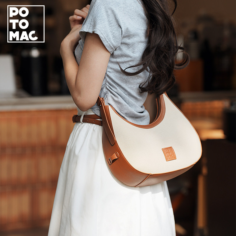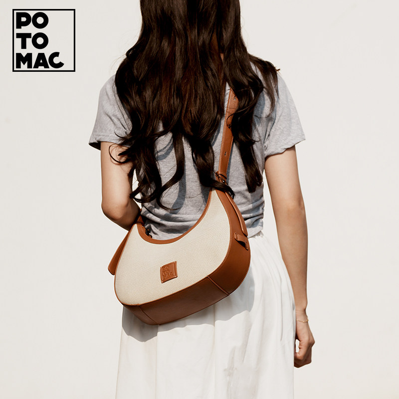 potomac帆布月亮包夏拼接撞色腋下包通勤单肩手提斜跨月牙包女