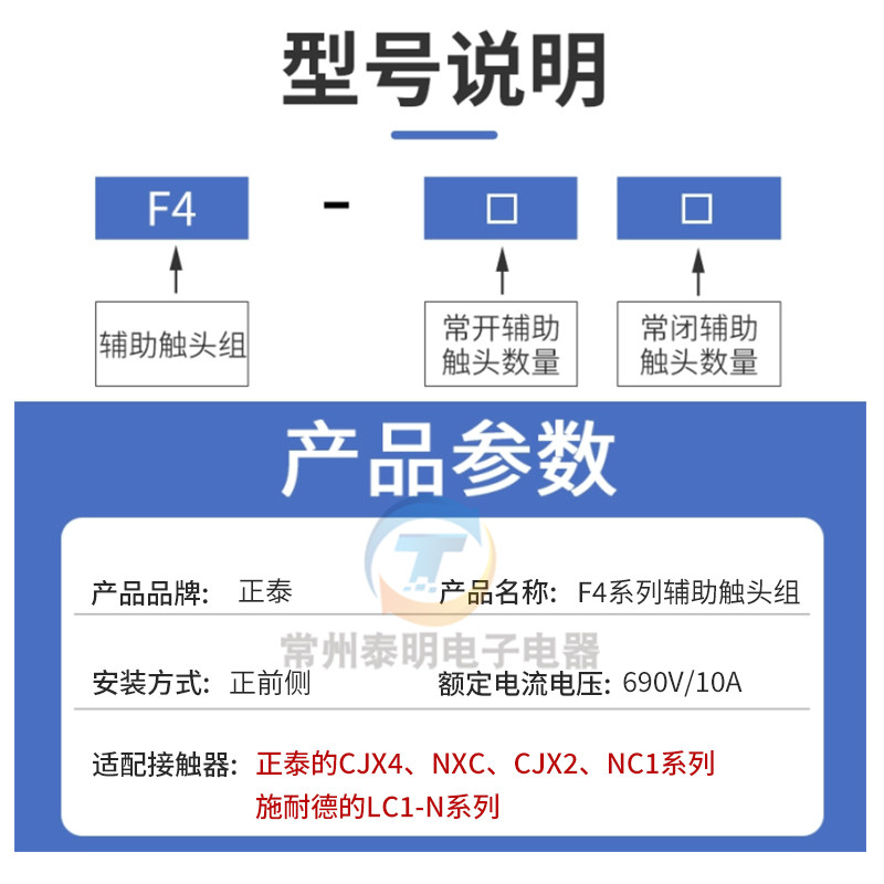 CHNT正泰接触器辅助触头F4-11/40/20/22/31触点02常闭13 CJX2常开