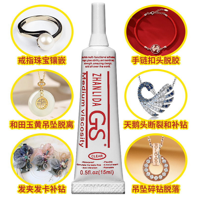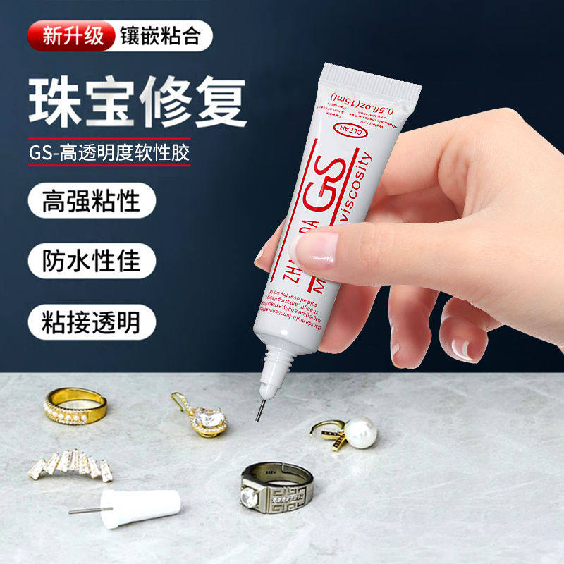 正品GS胶水珠宝镶嵌强力胶项链耳钉粘钻点钻粘掉钻发夹玉石脱胶固定防水手工DIY首饰戒指珍珠专用软性慢干胶