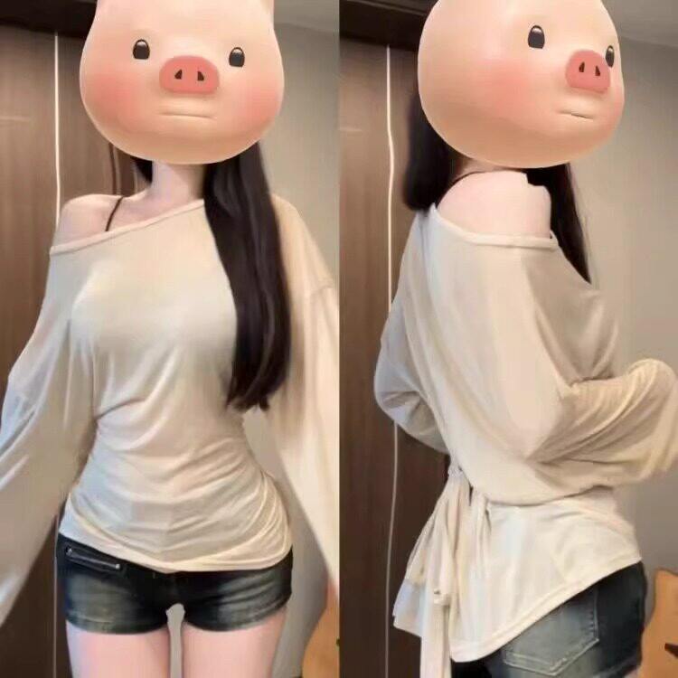 胖mm韩系慵懒风绑带收腰长袖恤女夏季薄款防晒罩衫设计感长袖上衣