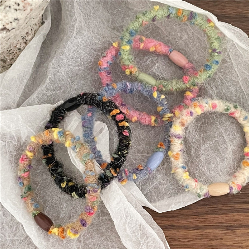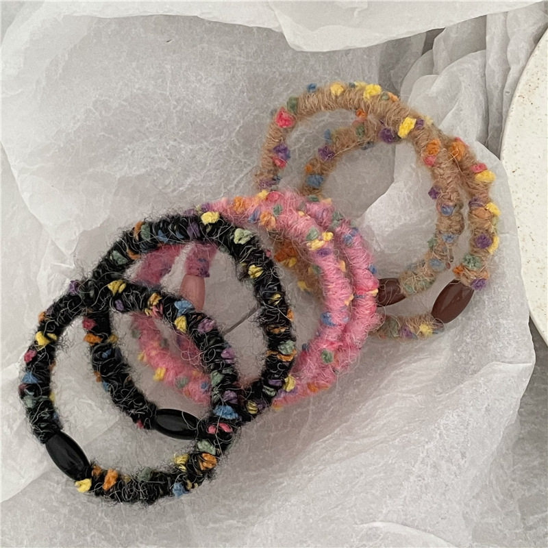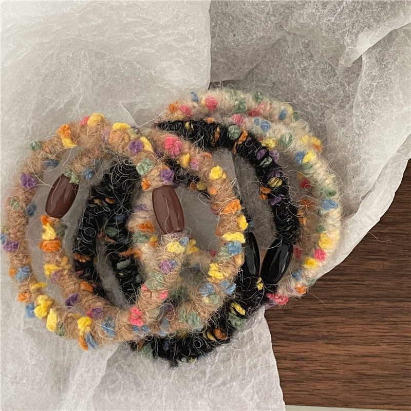 糖果杂色毛线缠绕发圈 少女心彩色毛绒发绳女森系扎头发皮筋仙美