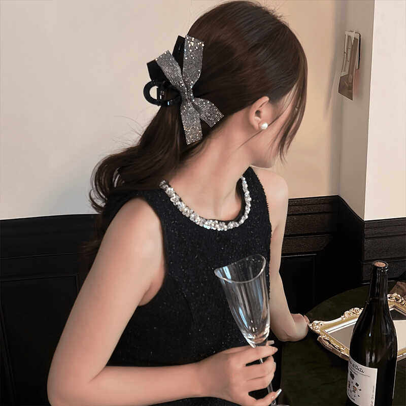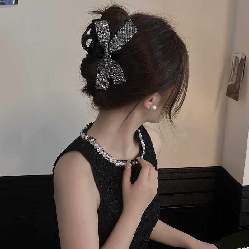 银河爆闪抓夹2025新款星光闪闪蝴蝶结发夹后脑勺饱满优雅气质发饰