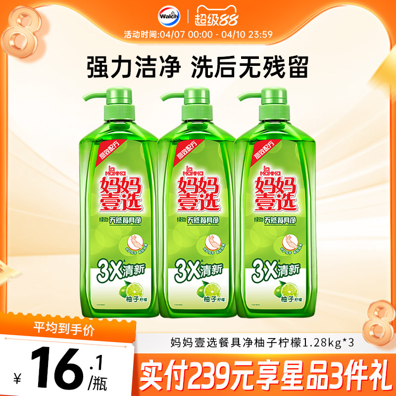 妈妈壹选洗洁精家庭按压餐具净柚子柠檬1.28kg*3洗碗去油污家用
