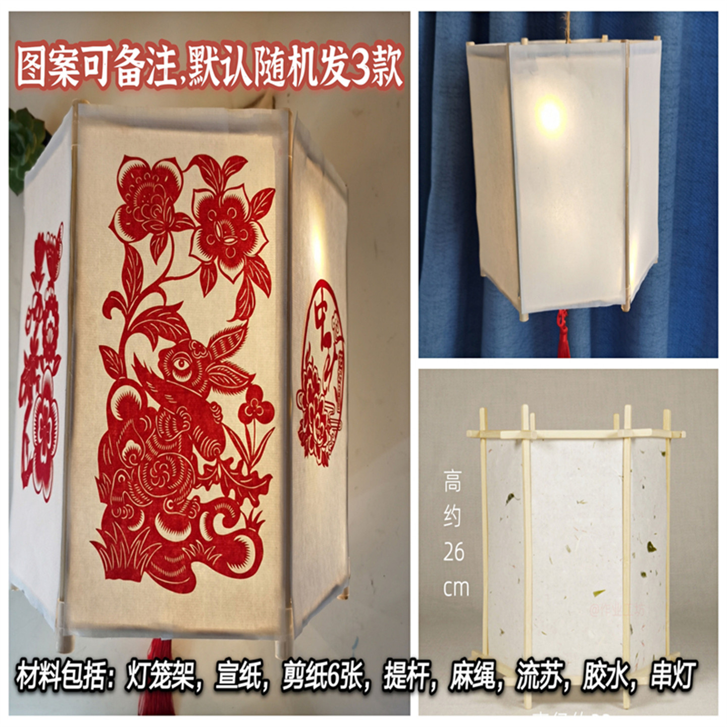 新年元宵节宣纸剪纸灯笼diy手工制作材料包手提花灯宫灯儿童道具