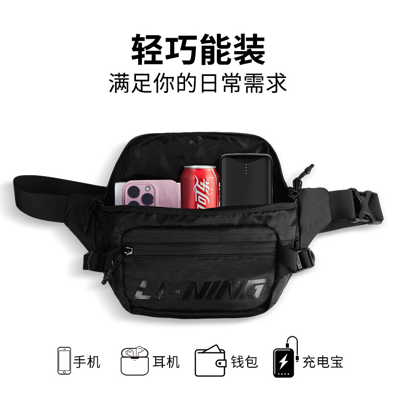 李宁斜挎包男士运动腰包跑步健身正品手机包多功能户外单肩胸包女