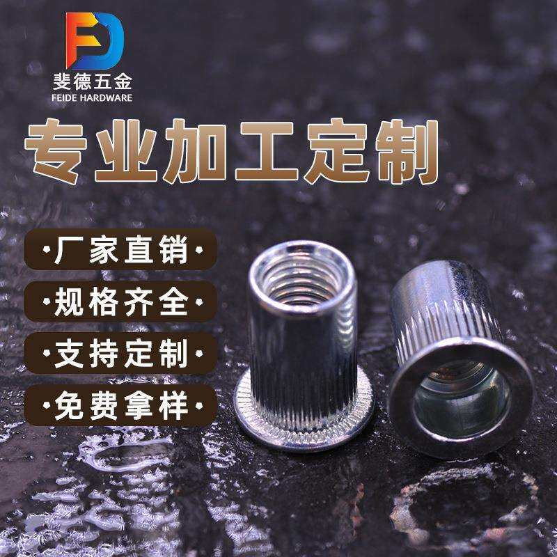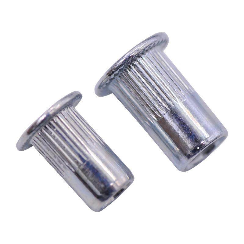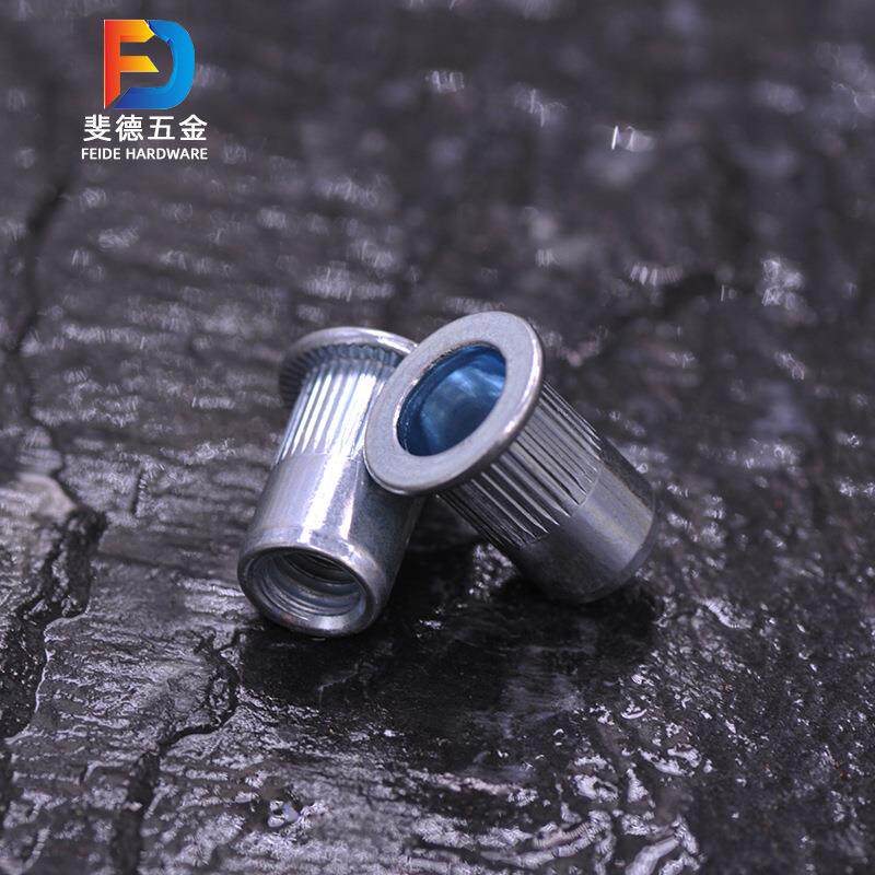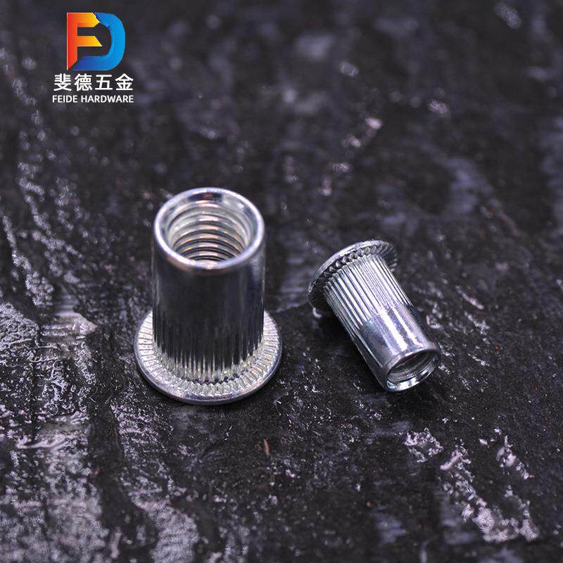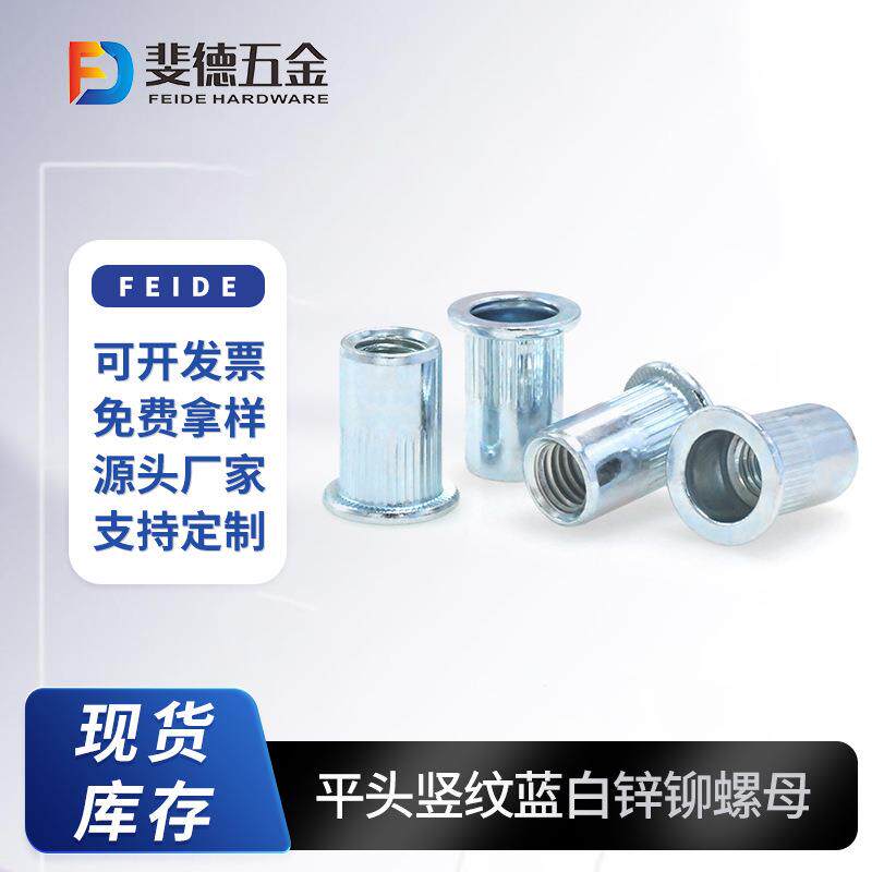铆螺母平头竖纹通孔铁质拉铆螺母铁镀锌拉帽大边竖纹彩锌拉铆螺母
