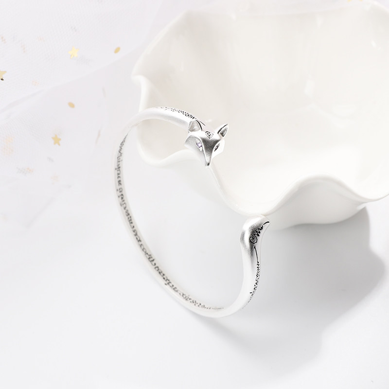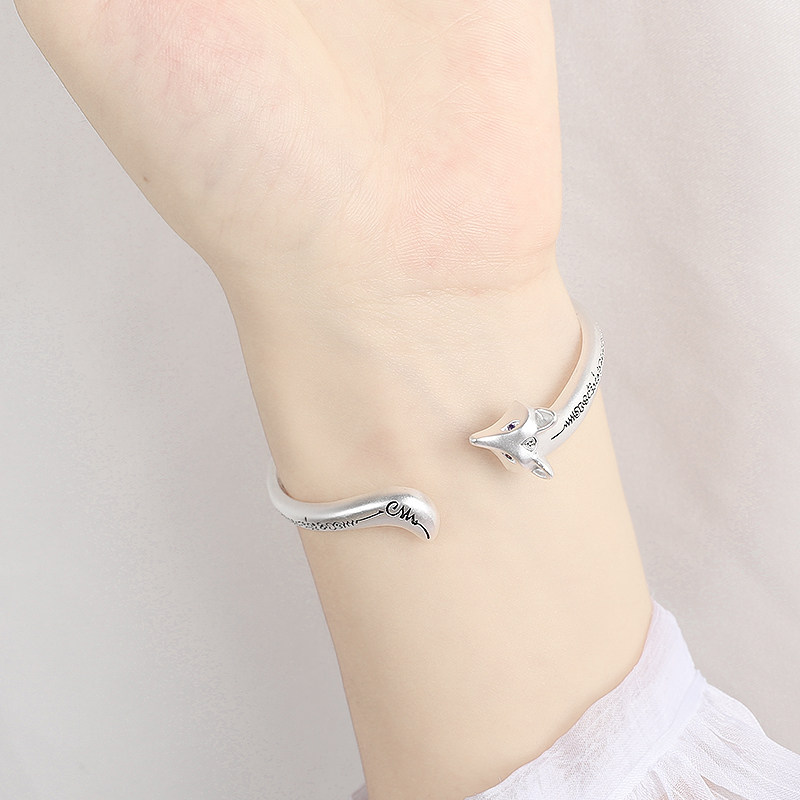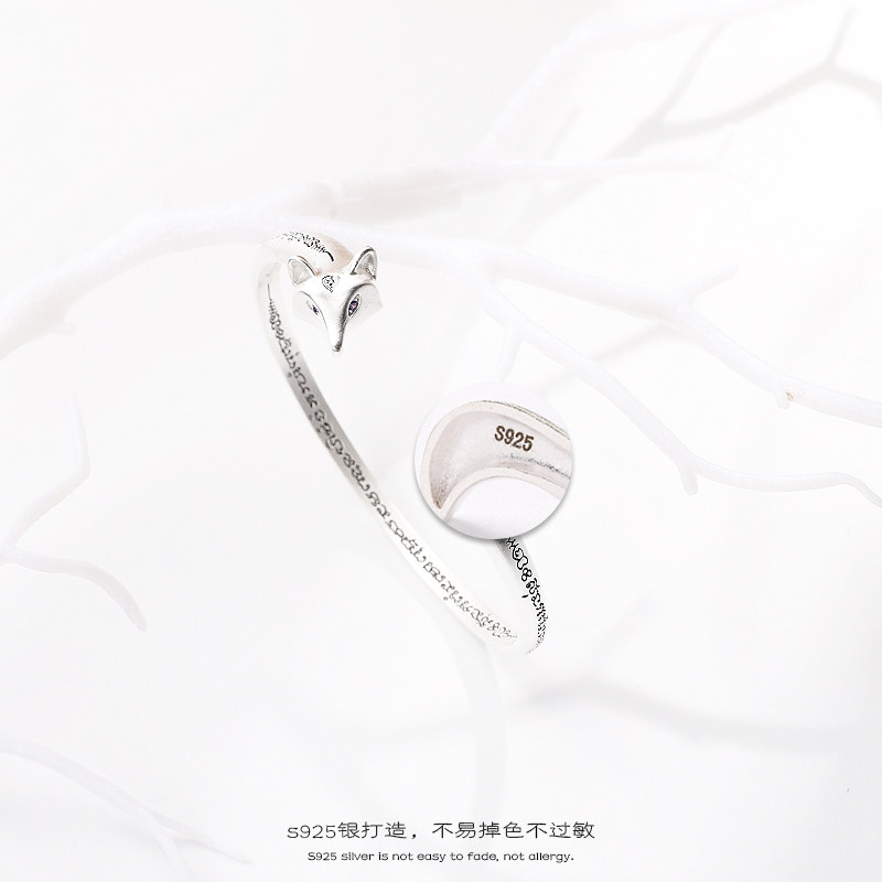 狐狸s925纯银手镯女冷淡风复古简约学生百搭日韩手环时尚情侣手饰
