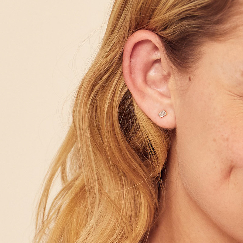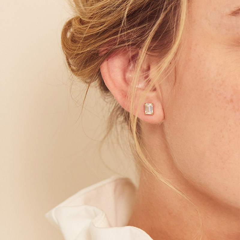 【合成/培育】VRAI芮爱极简爪镶祖母绿耳钉冰糖形钻石耳钉18k金