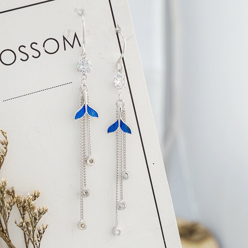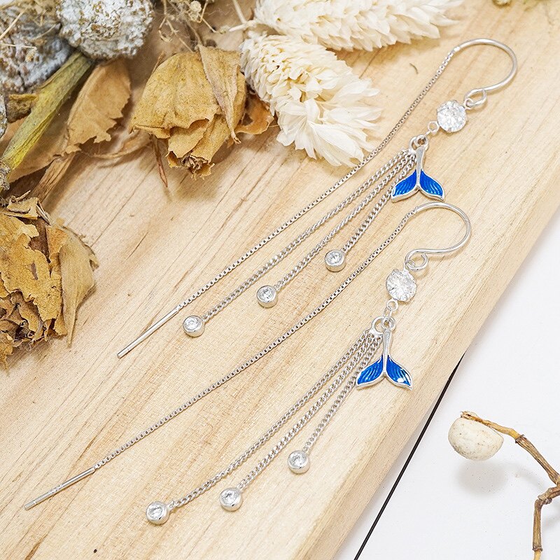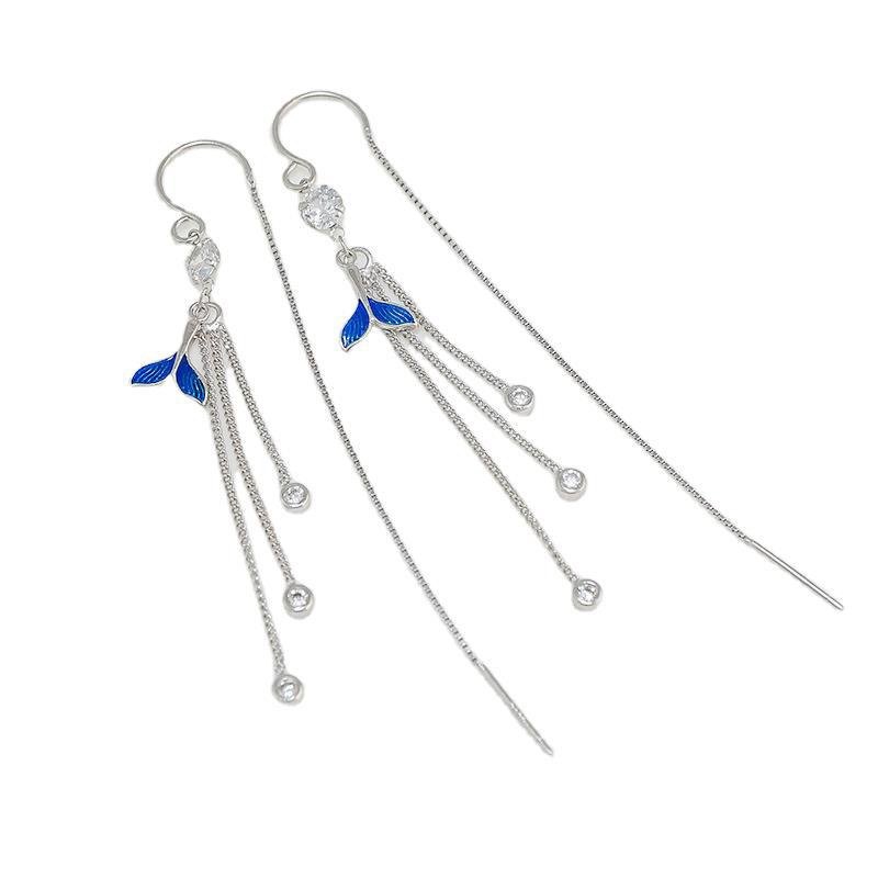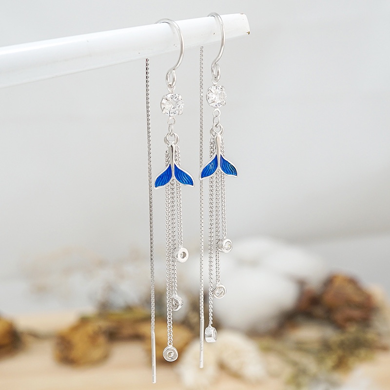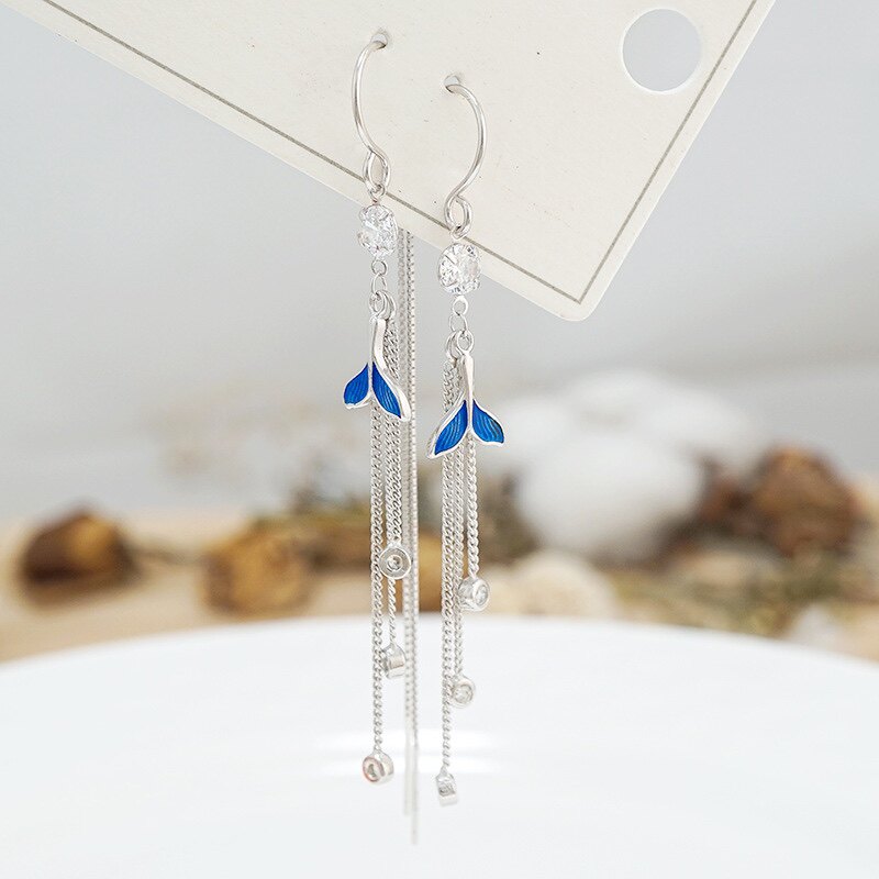 s925纯银流苏耳环女 韩国气质海豚尾耳线显瘦脸鱼尾耳坠2025新款