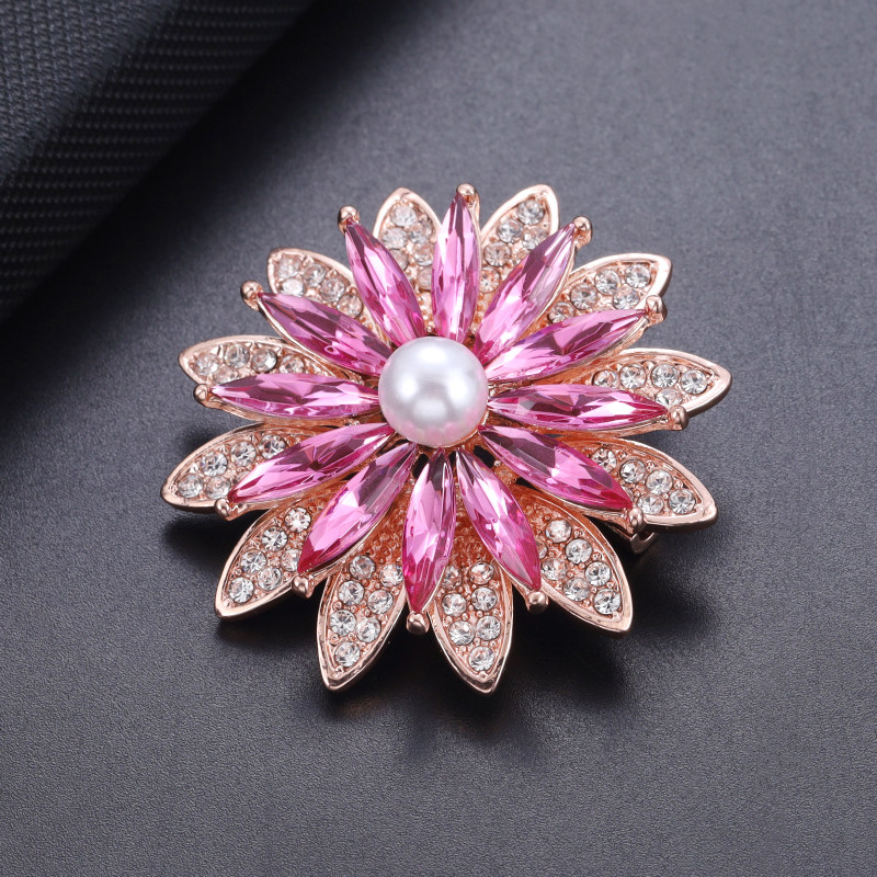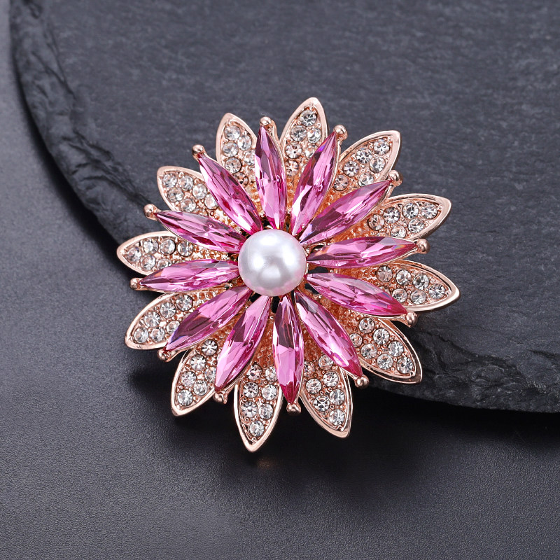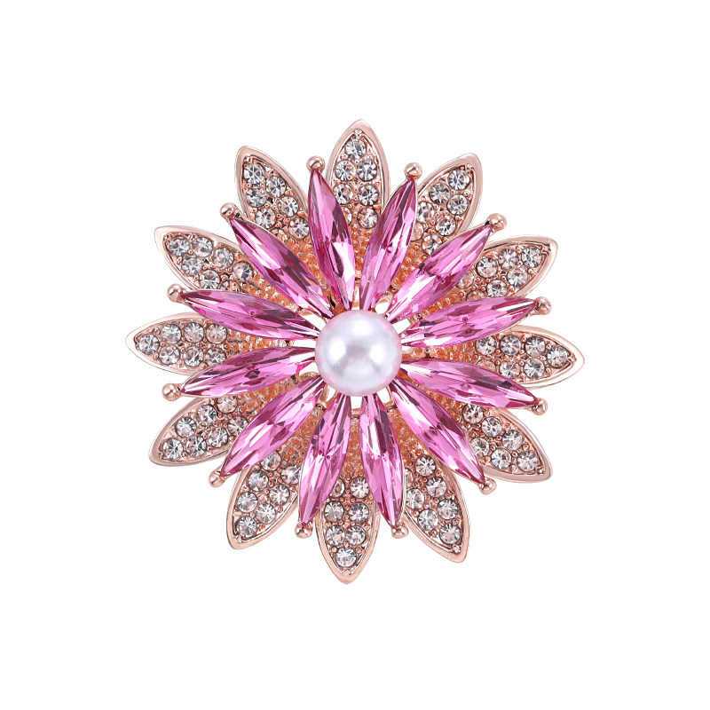 满钻粉色刺芒太阳花胸针女精致固定防走光别针丝巾扣新款潮胸花