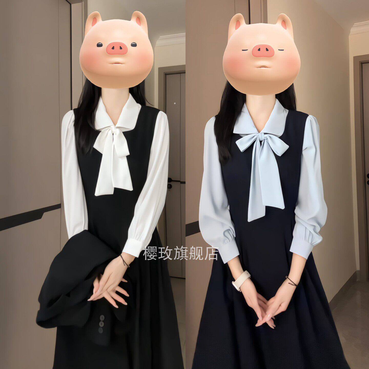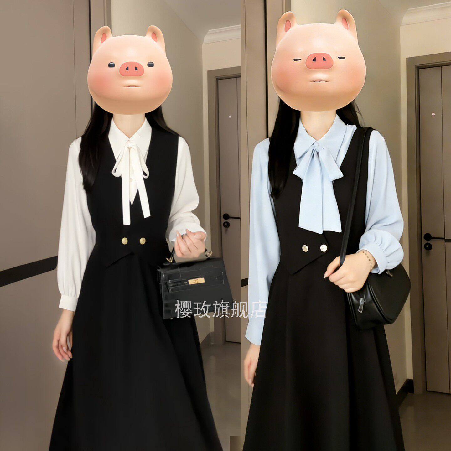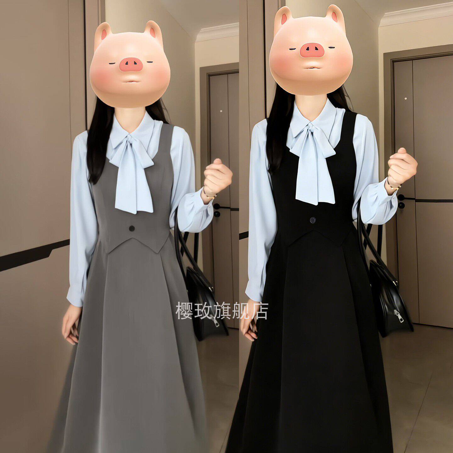 减龄学院风马甲连衣裙女大学生教资考公面试穿搭衬衫背心裙两件套