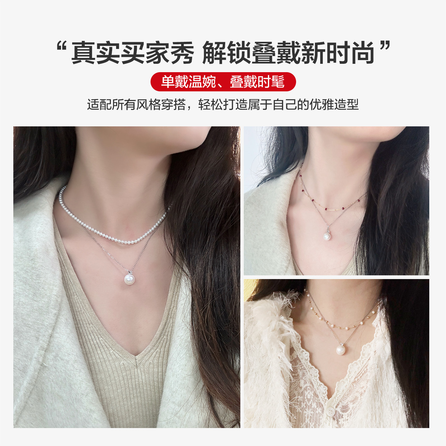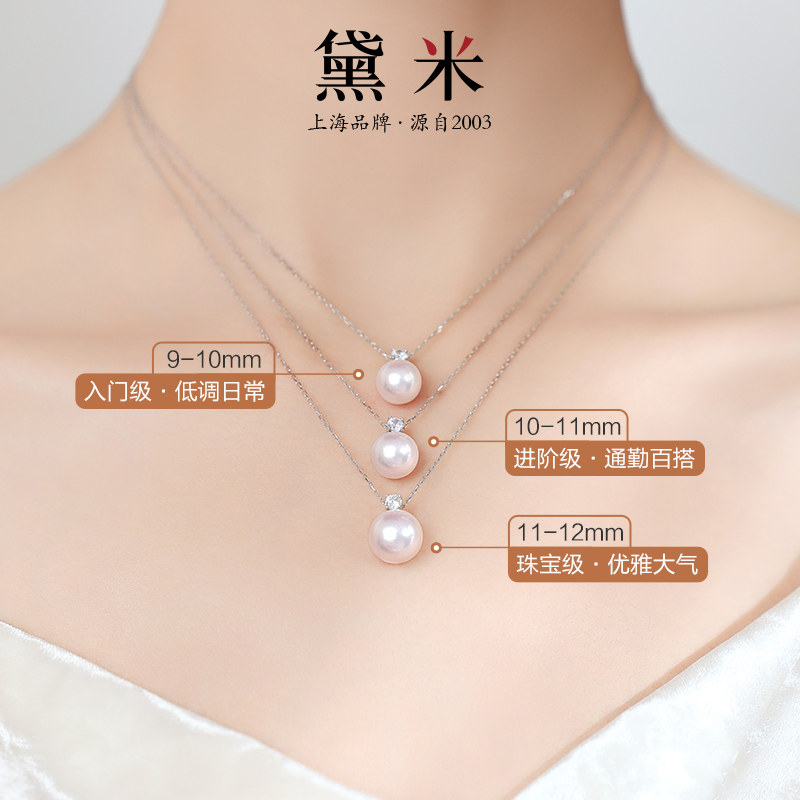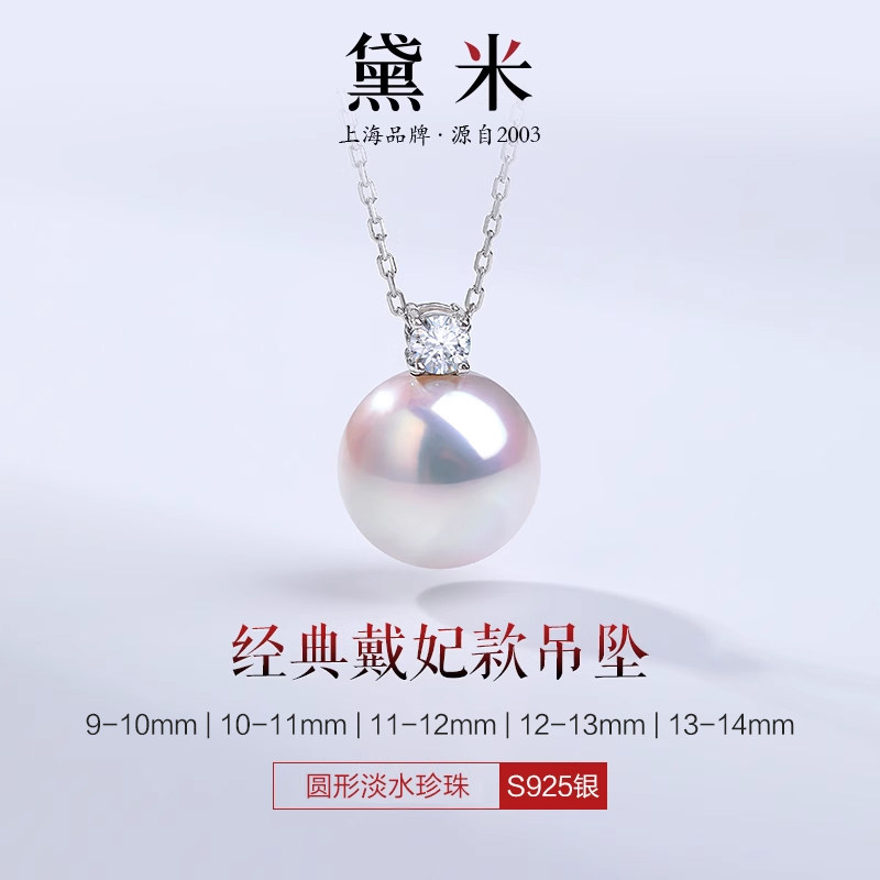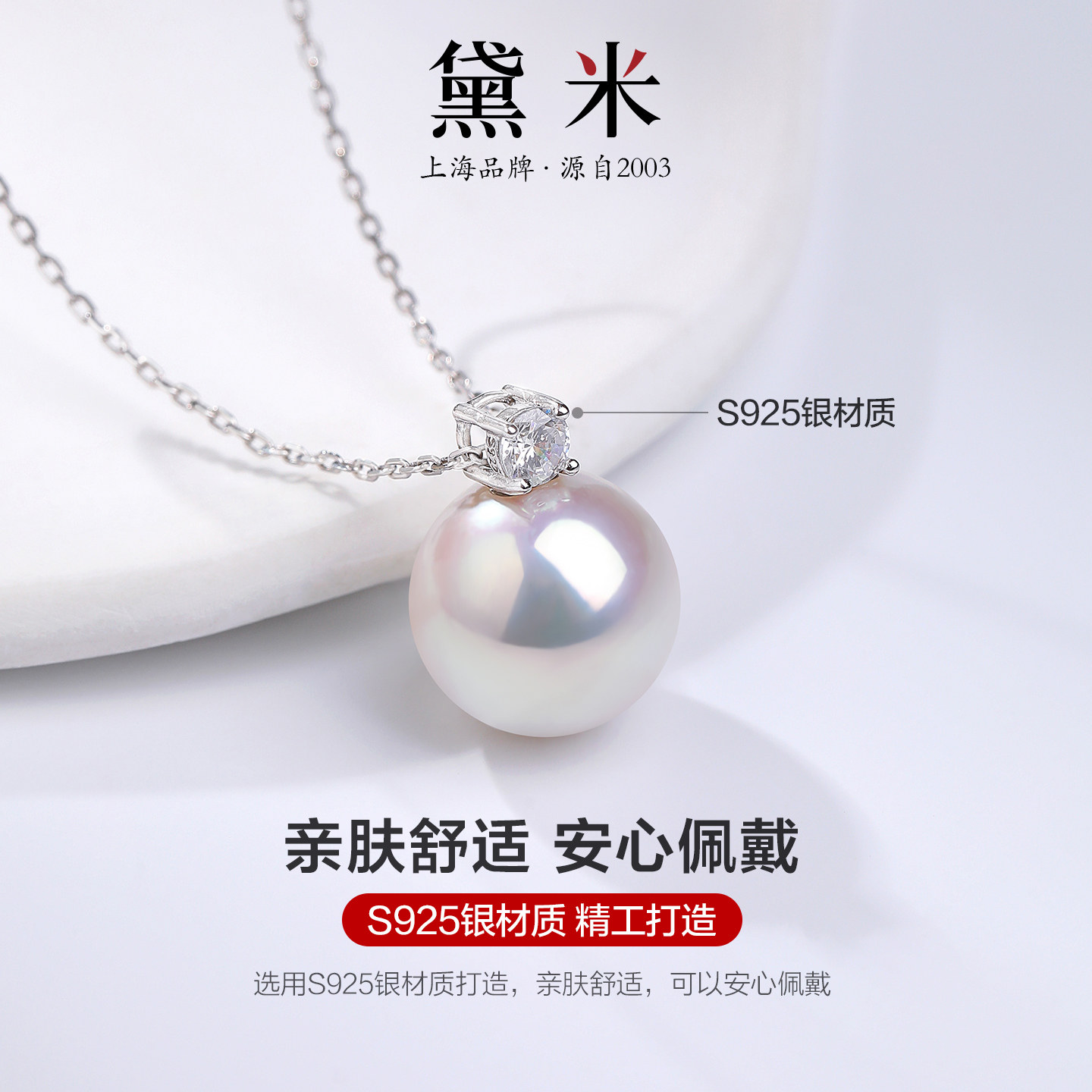 黛米珠宝 无忧9-12mm圆形珍珠项链S925银王妃款单颗吊坠女