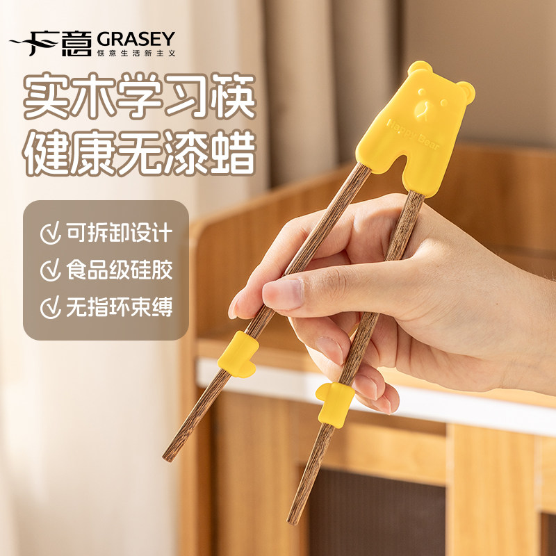 广意鸡翅木趣味可爱儿童辅助训练筷防滑学筷神器实木无漆无蜡