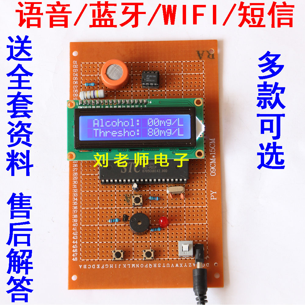 基于51单片机酒精浓度测试仪设计成品酒驾检测系统报警器散件套件